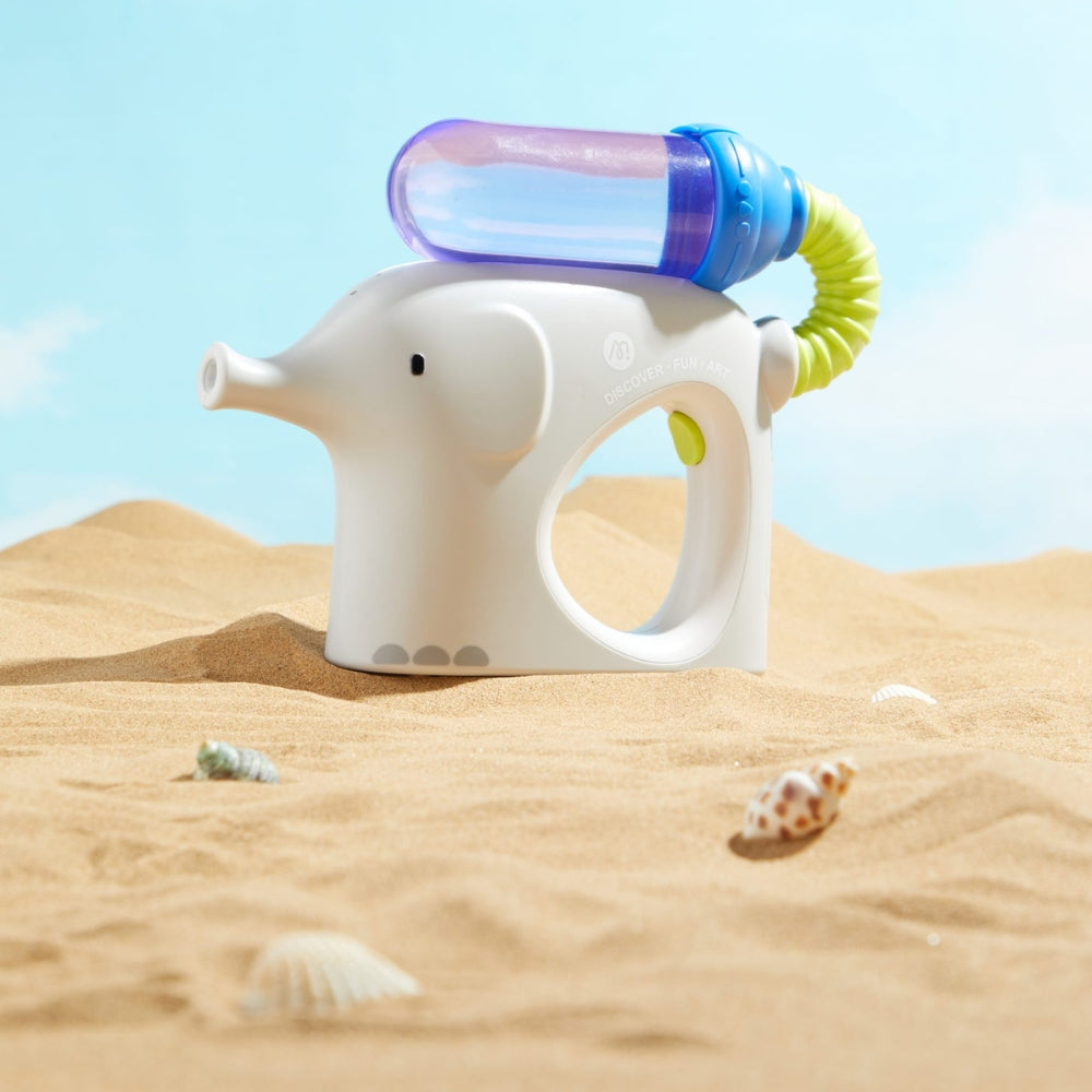 Derudover tiltrækker det farverige design i form af en elefant opmærksomhed og gør pistolen til en favoritgadget for de yngste.