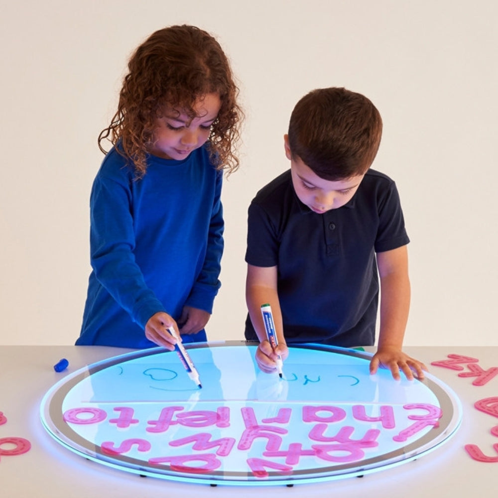 De kan bruges i sandkassen, på gulvet, på et lyspanel eller i vandet.
