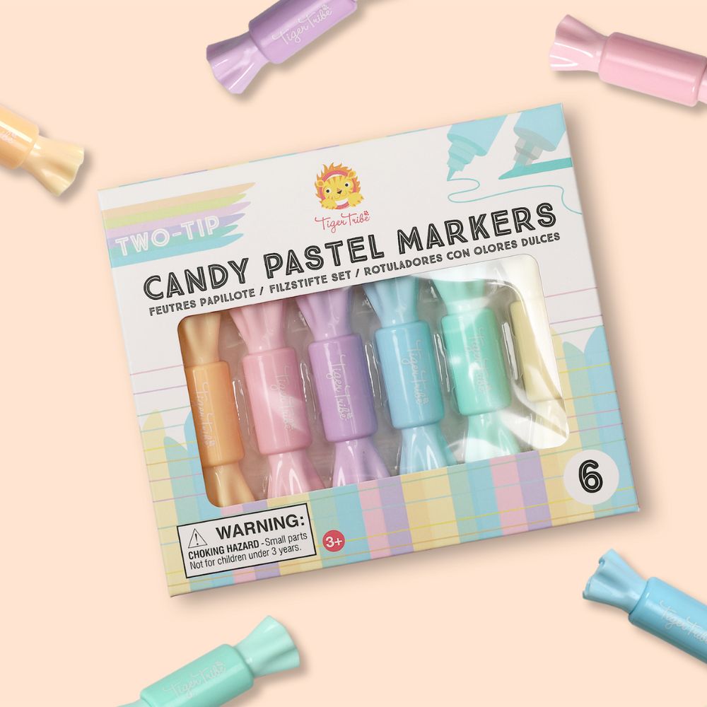 Pastel Candy Markers fra Tiger Tribe er et sødt sæt med 6 dobbeltsidede tuschpenne, der vil begejstre enhver lille kunstner.
