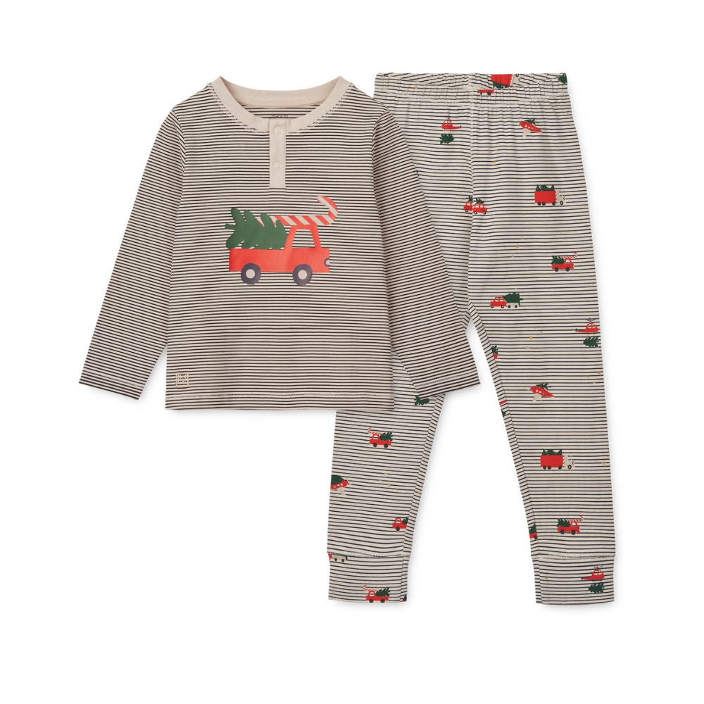 Liewood pyjamasæt med print Wilhelm Holiday vehicle / Stripe navy