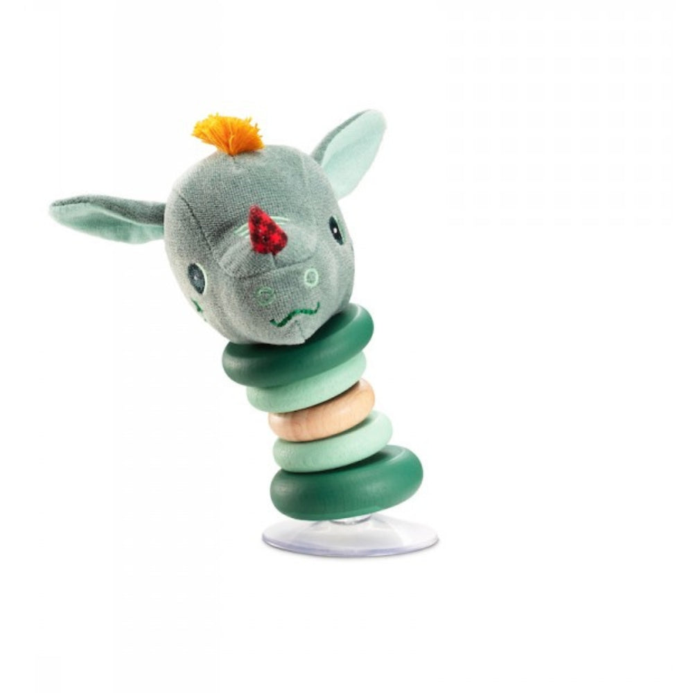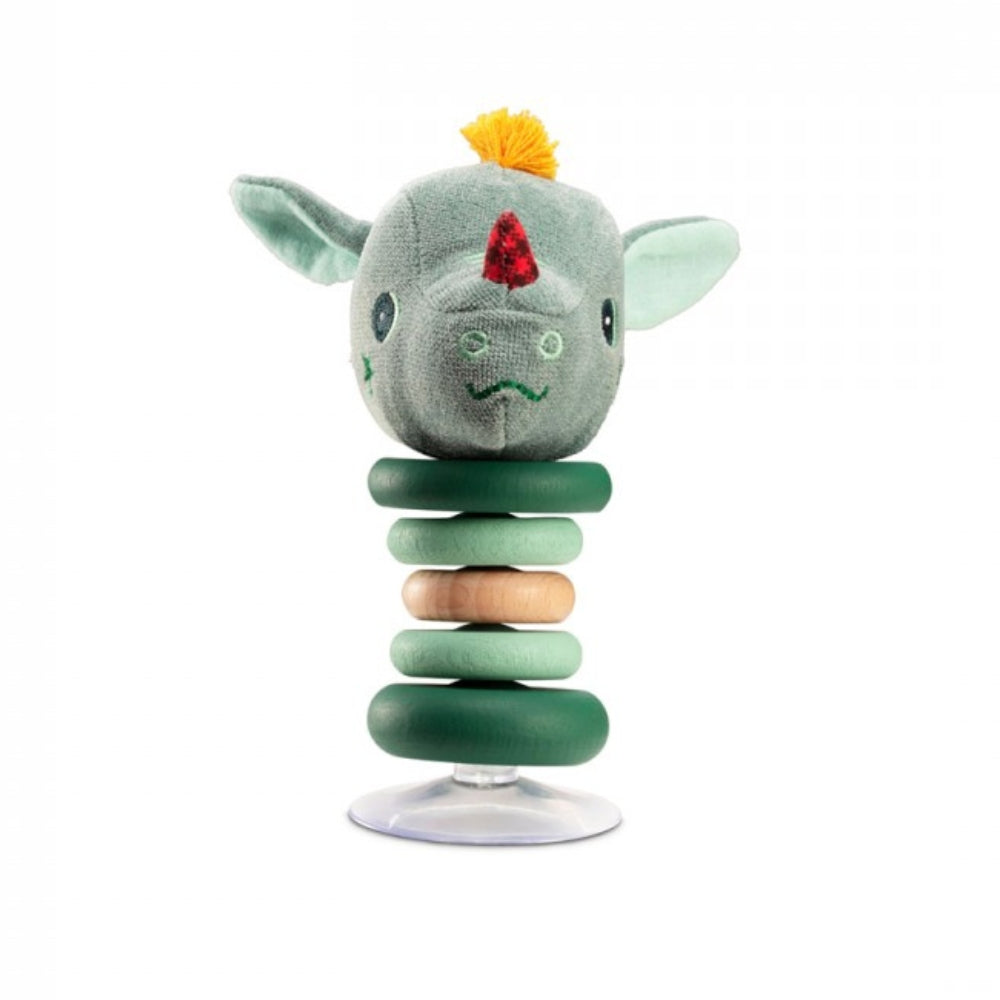 Træ-babyralle med silikone-sugekop Dragon Joe fra det belgiske mærke Lilliputiens.