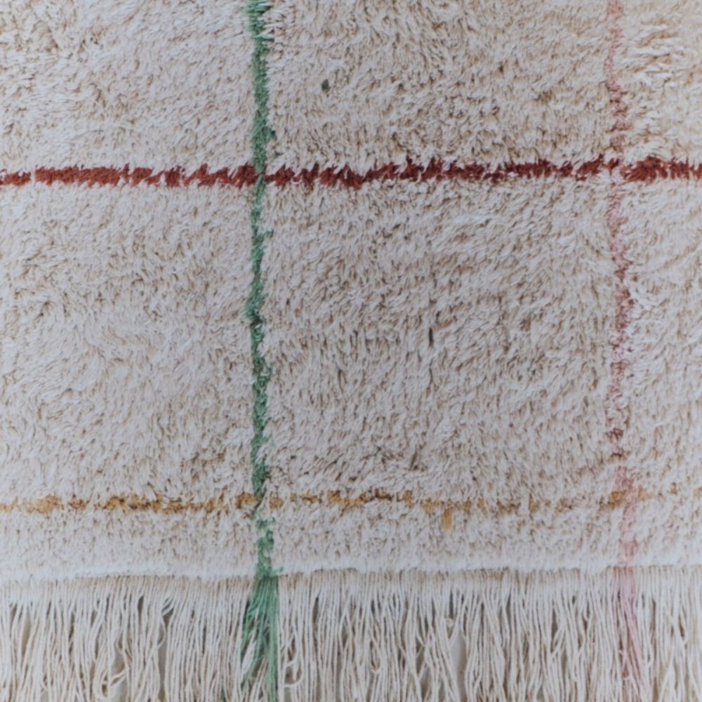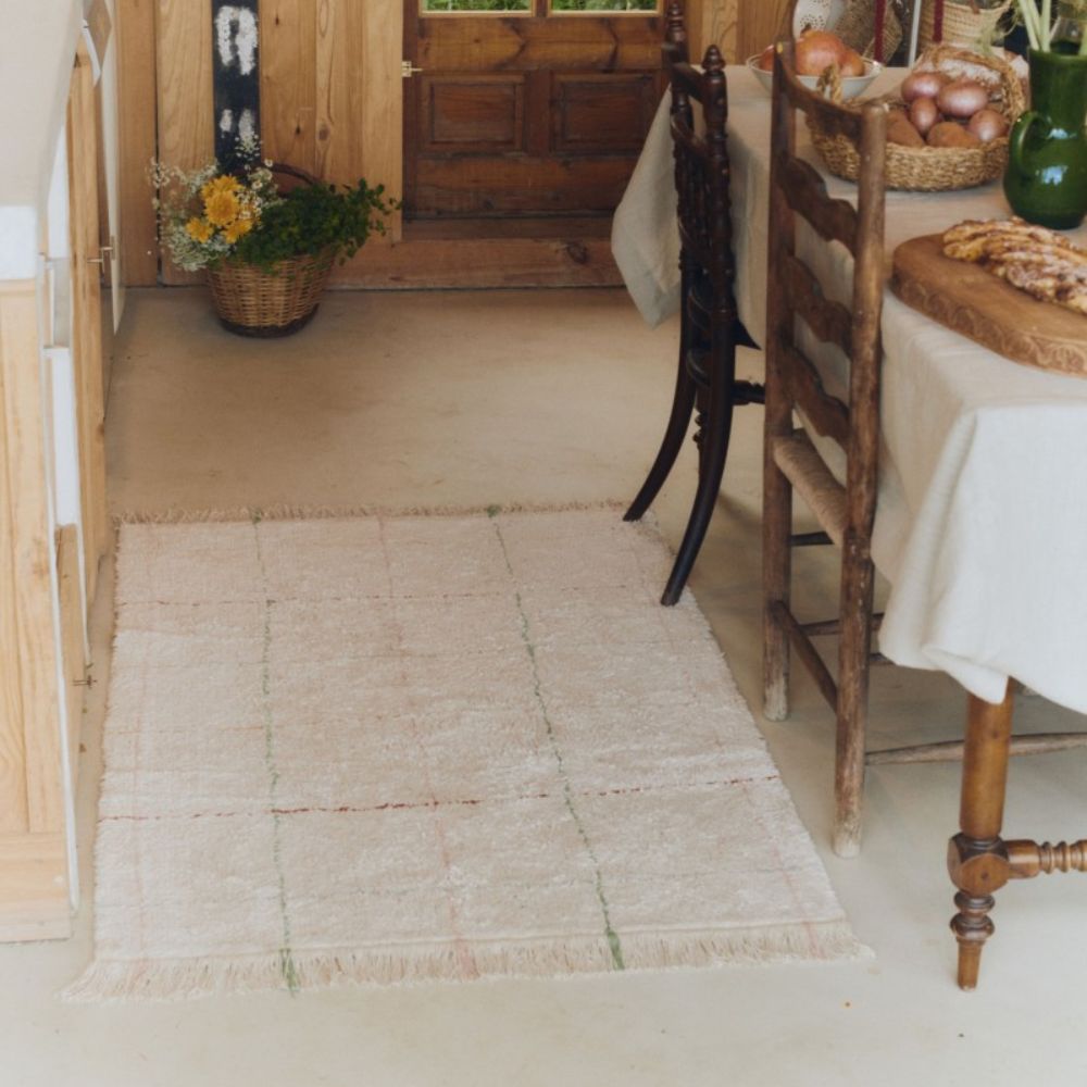 Lorena Canals-tæppet er håndlavet af naturlig bomuld og charmerer med sin rektangulære form og striber i forskellige farver, der skaber en subtil, men munter accent i børneværelset eller stuen.