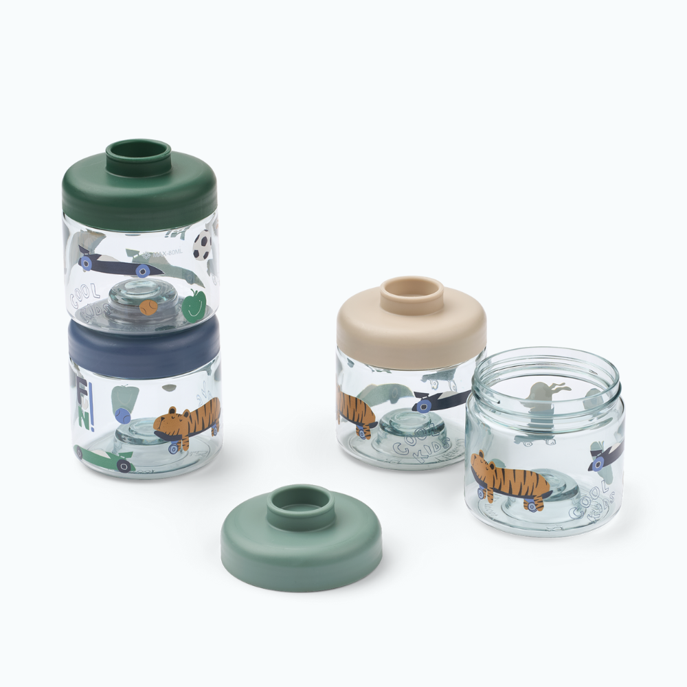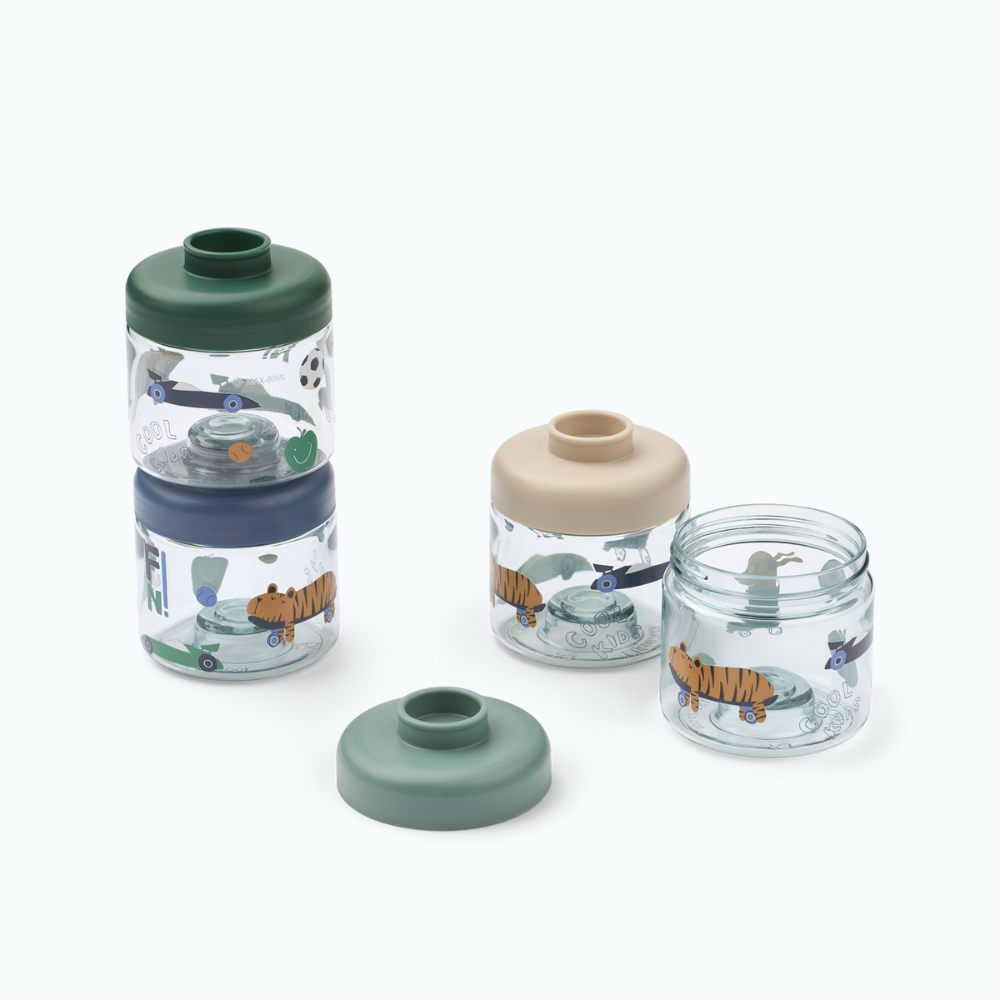 Dette er det perfekte sæt til de første babymåltider, snacks og puréer på farten – snackbeholderne fra Liewood holder orden og sparer tid.