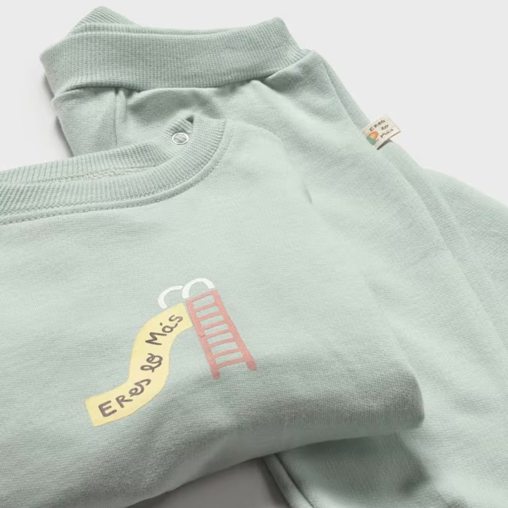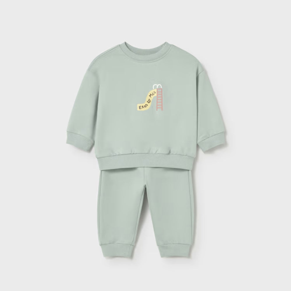 Det mintfarvede Mayoral-babysæt er et behageligt hverdagsvalg til dit barn.