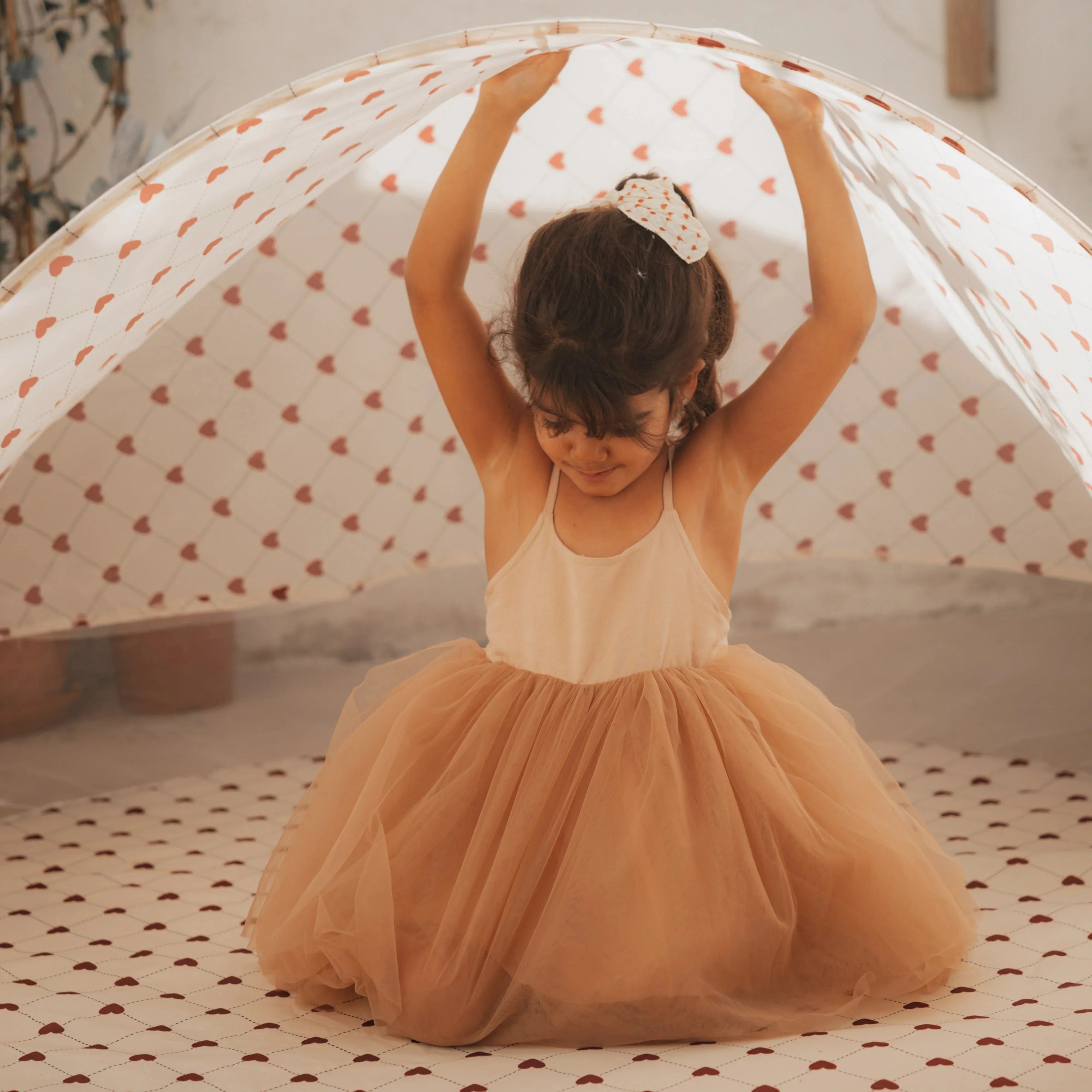 Det smukke foldbare strandtelt fra Mrs Ertha er et magisk sted at lege, hvile og slappe af.