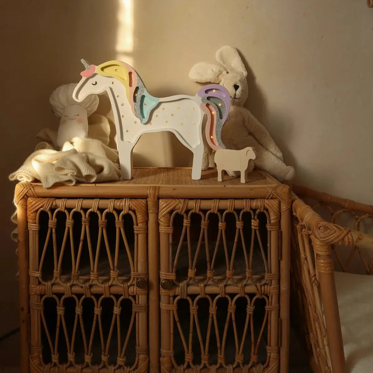 Little Lights-lampen i form af en enhjørning er det perfekte tilbehør til et børneværelse, hvor den skaber en magisk atmosfære under leg og aftenlæsning.