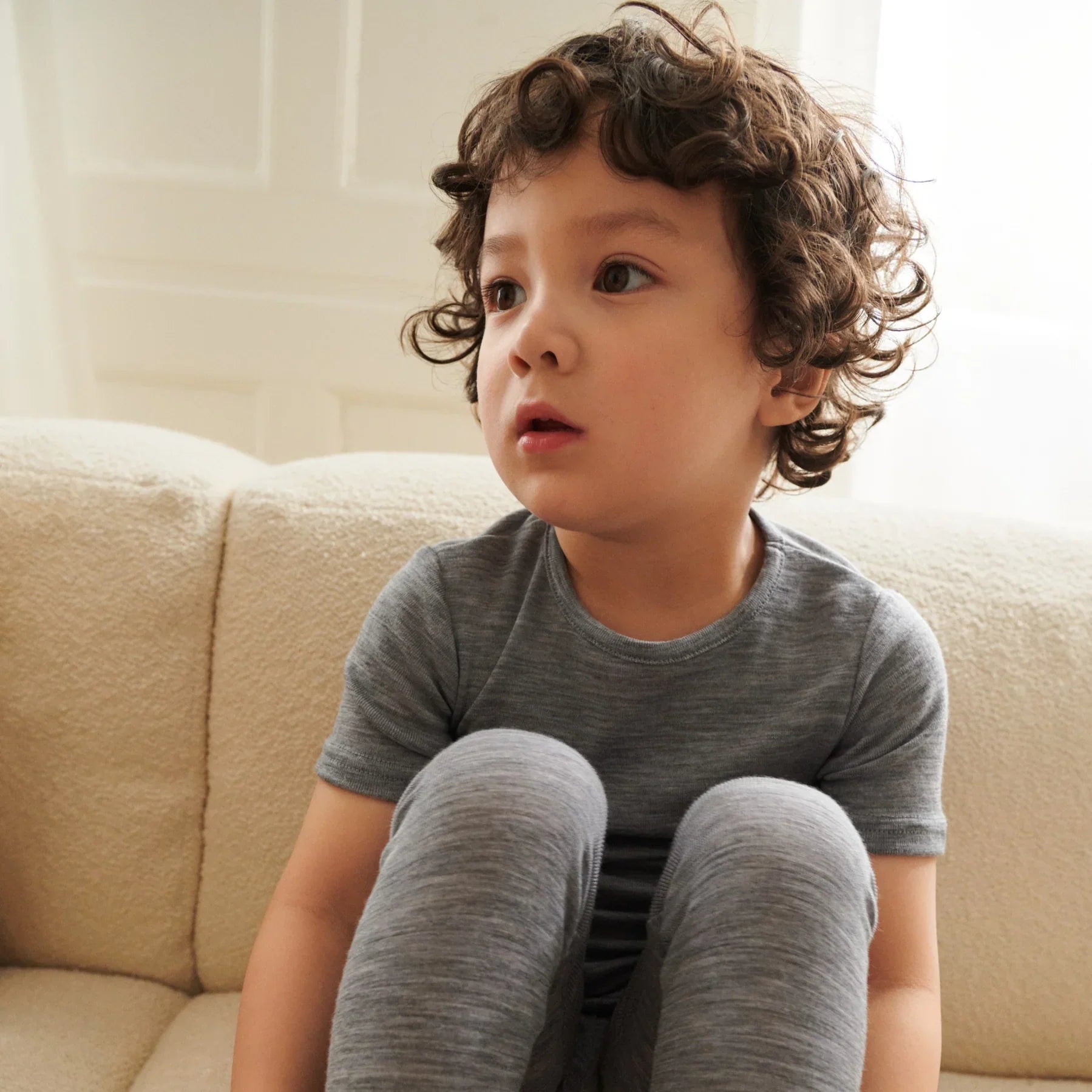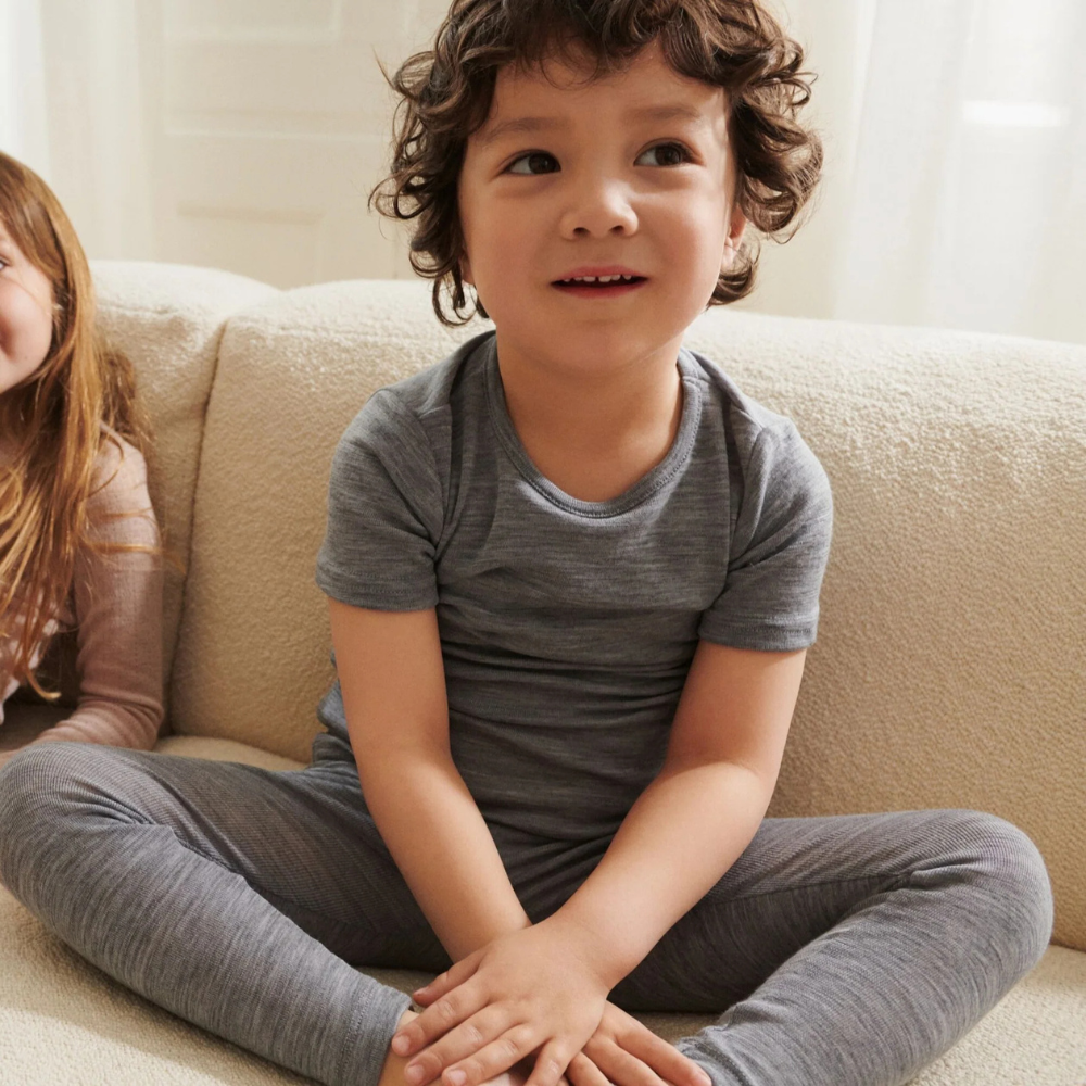 Wheat-leggings i uld til større drenge Agi melange grey
