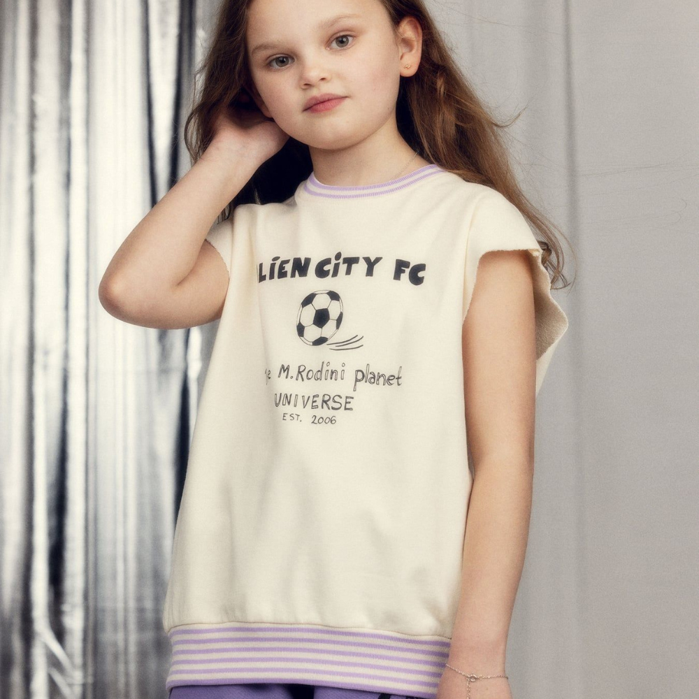Mini Rodini børnetrøje uden ærmer Alien City FC Off-white