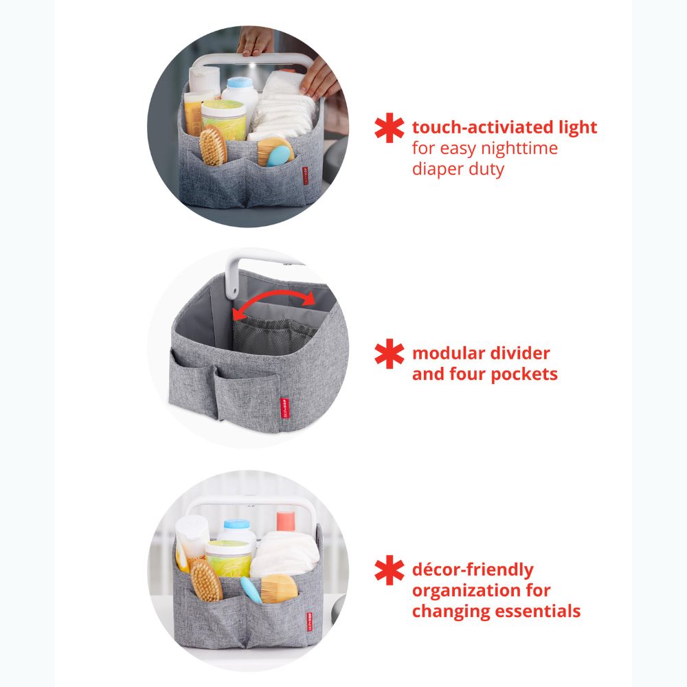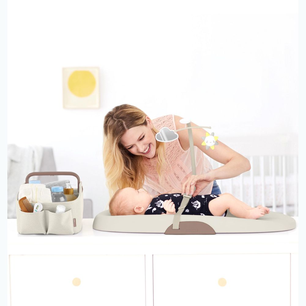 Skip Hop gør det muligt at opdele bleer, vådservietter og andet tilbehør perfekt takket være 2 store, justerbare rum og 4 mindre lommer.