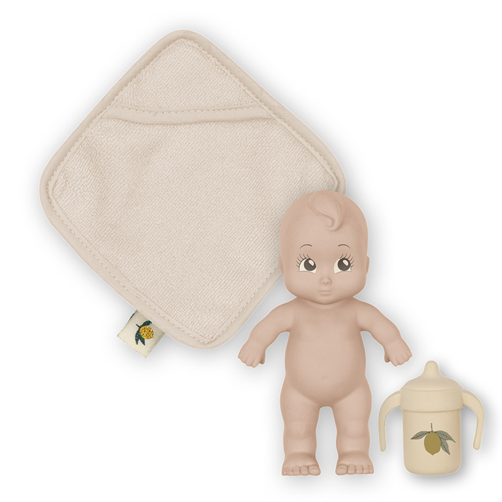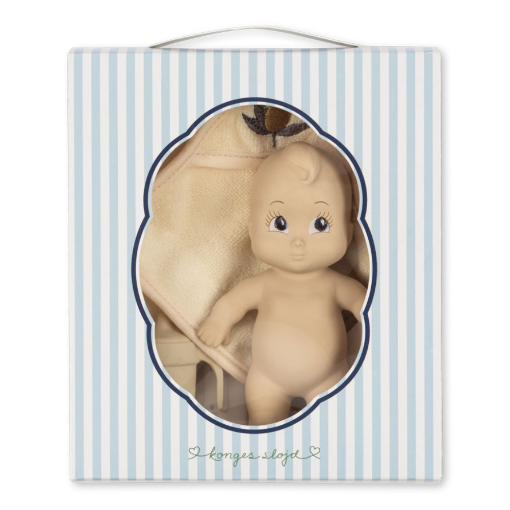 Denne badedukke fra Konges Slojd er en sød legekammerat, der gladeligt hopper med i badet og gør din daglige rutine mere fornøjelig.
