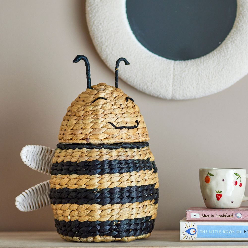 Den omhyggeligt designede Bloomingville Finn Basket legetøjskurv kombinerer holdbarhed med æstetik. Det praktiske låg hjælper med at skjule indholdet og beskytter legetøj og andre små genstande mod støv.