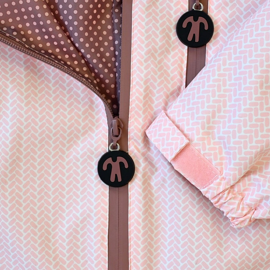Hætten og manchetterne kan justeres med velcro.