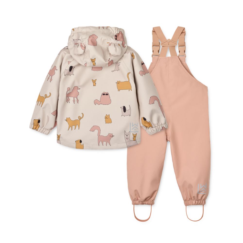 Liewood Manu Cats and Dogs Sandy regnjakke og bukser til børn