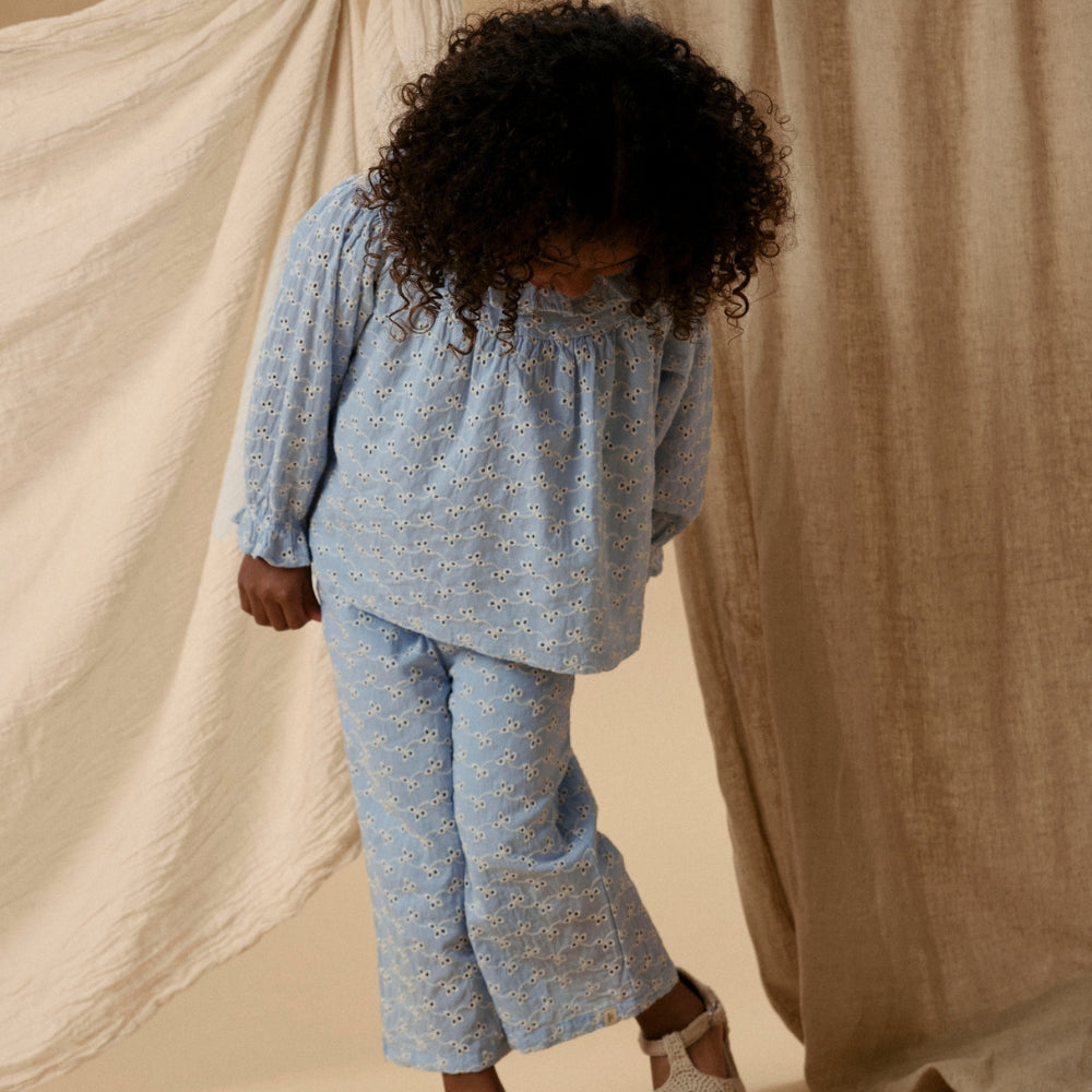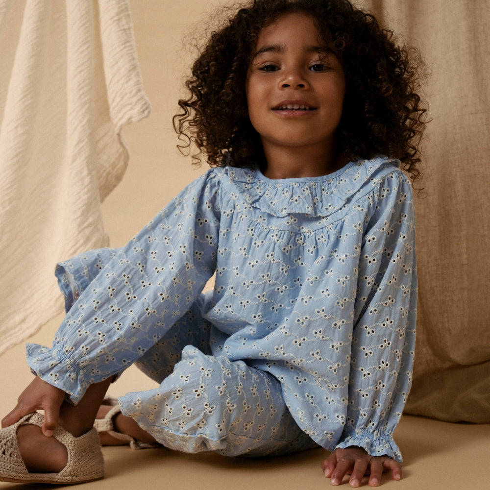 Lil' Atelier Børnebluse til piger med flæser Zen Blue NMFTESSIE