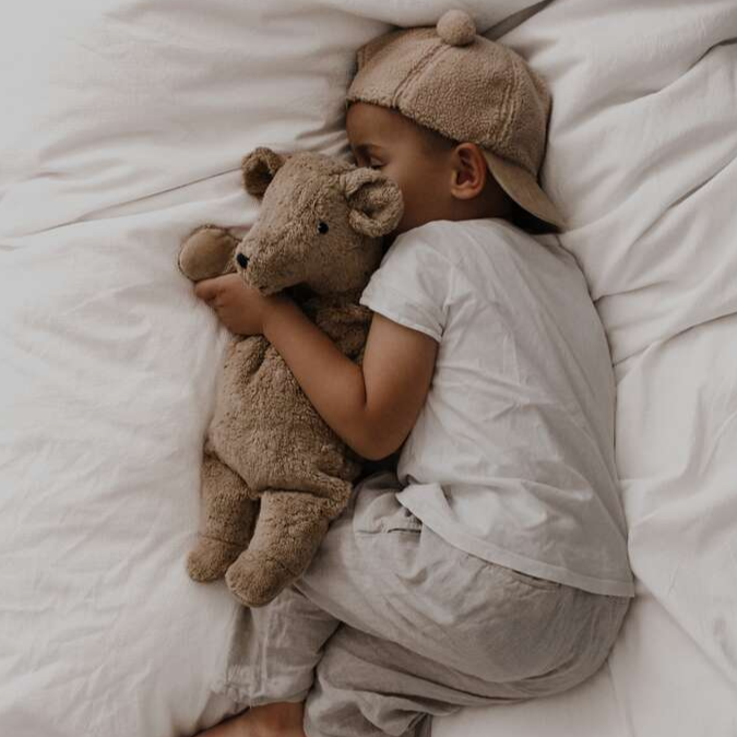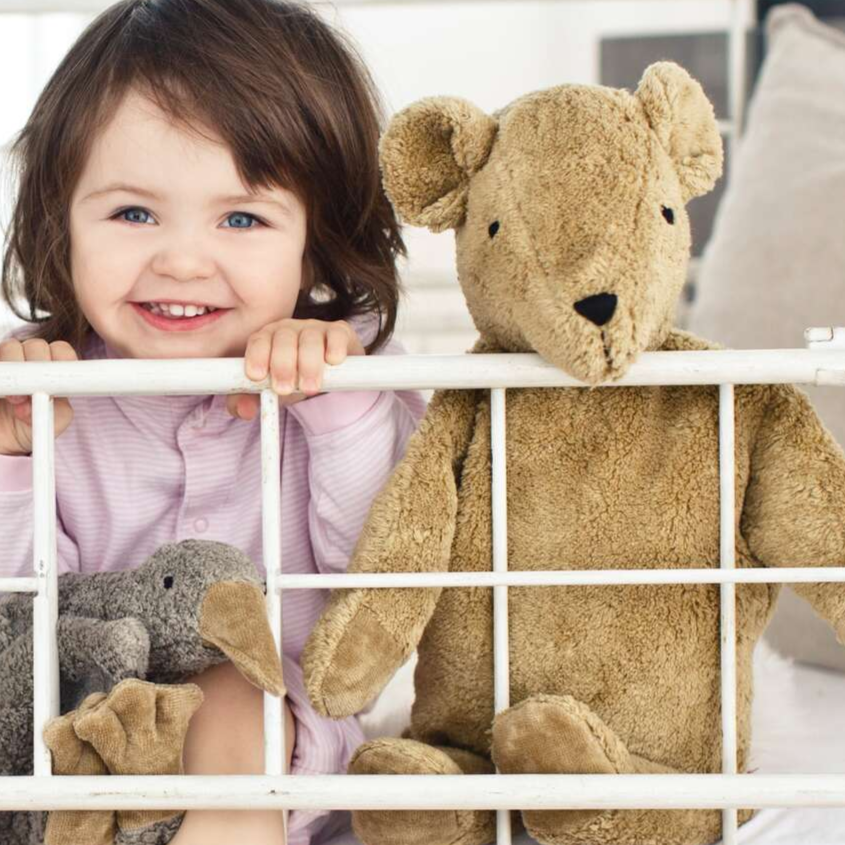 Den håndlavede bamse er ideel til babyer fra 2 måneder.