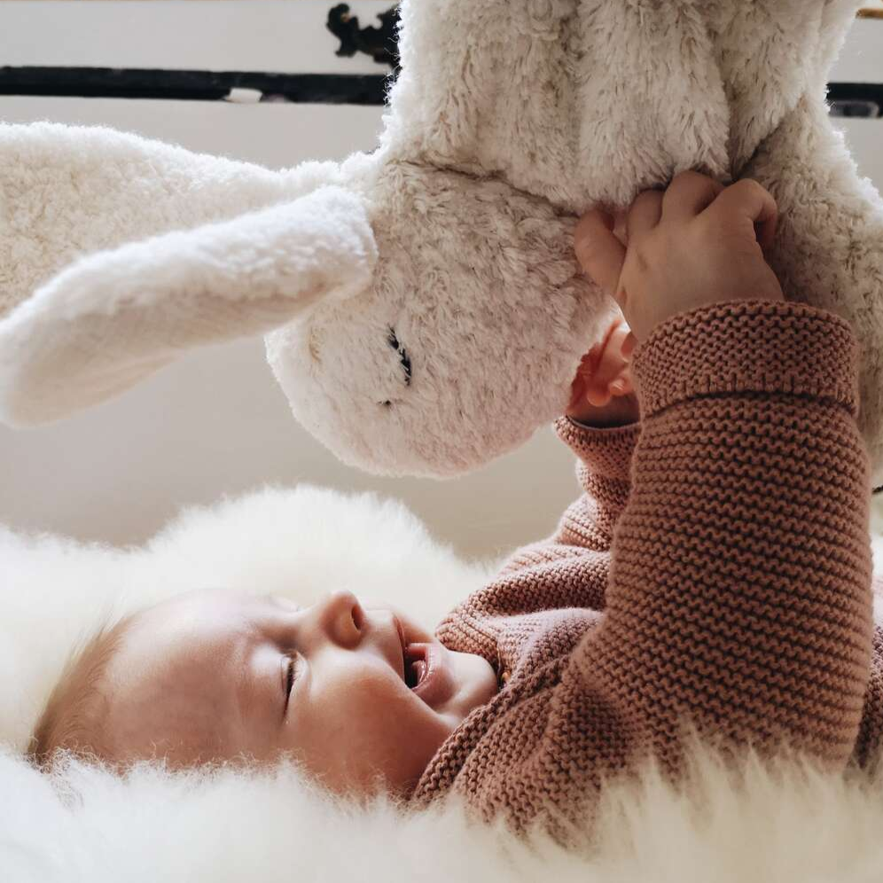 Den håndlavede store kanin er ideel til babyer helt ned til 2 måneder.