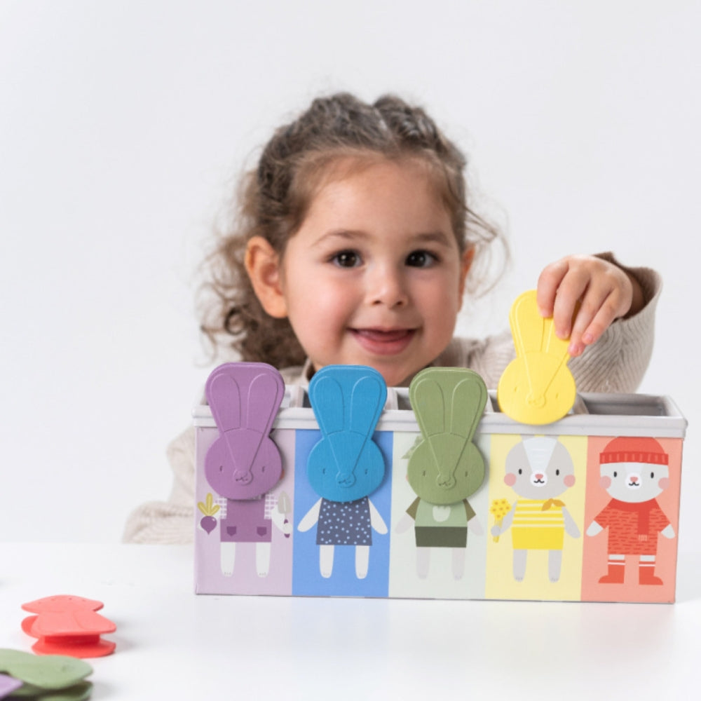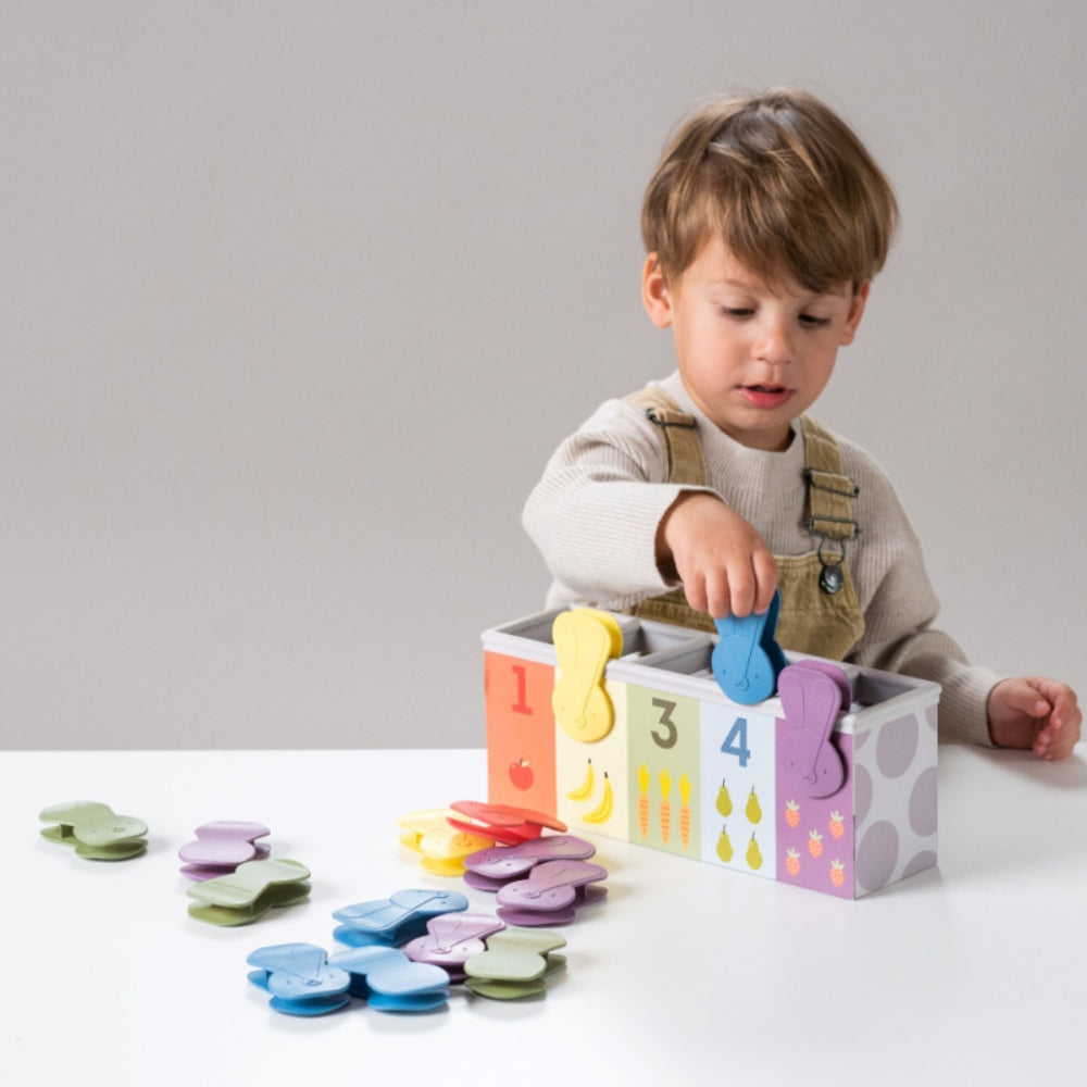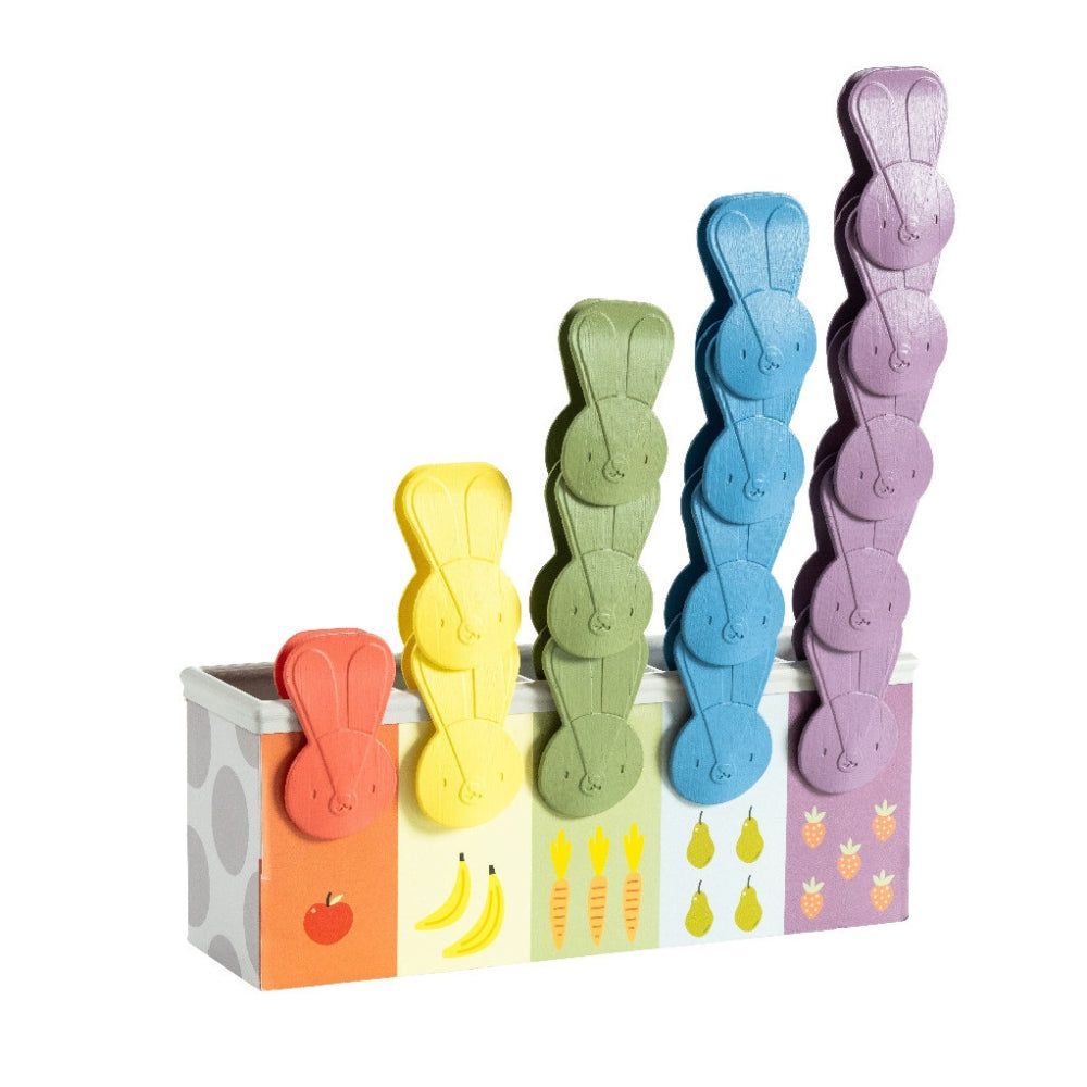 Sættet indeholder en smukt illustreret æske og 15 kaninformede klip, der giver dit barn timevis af underholdning og læring.