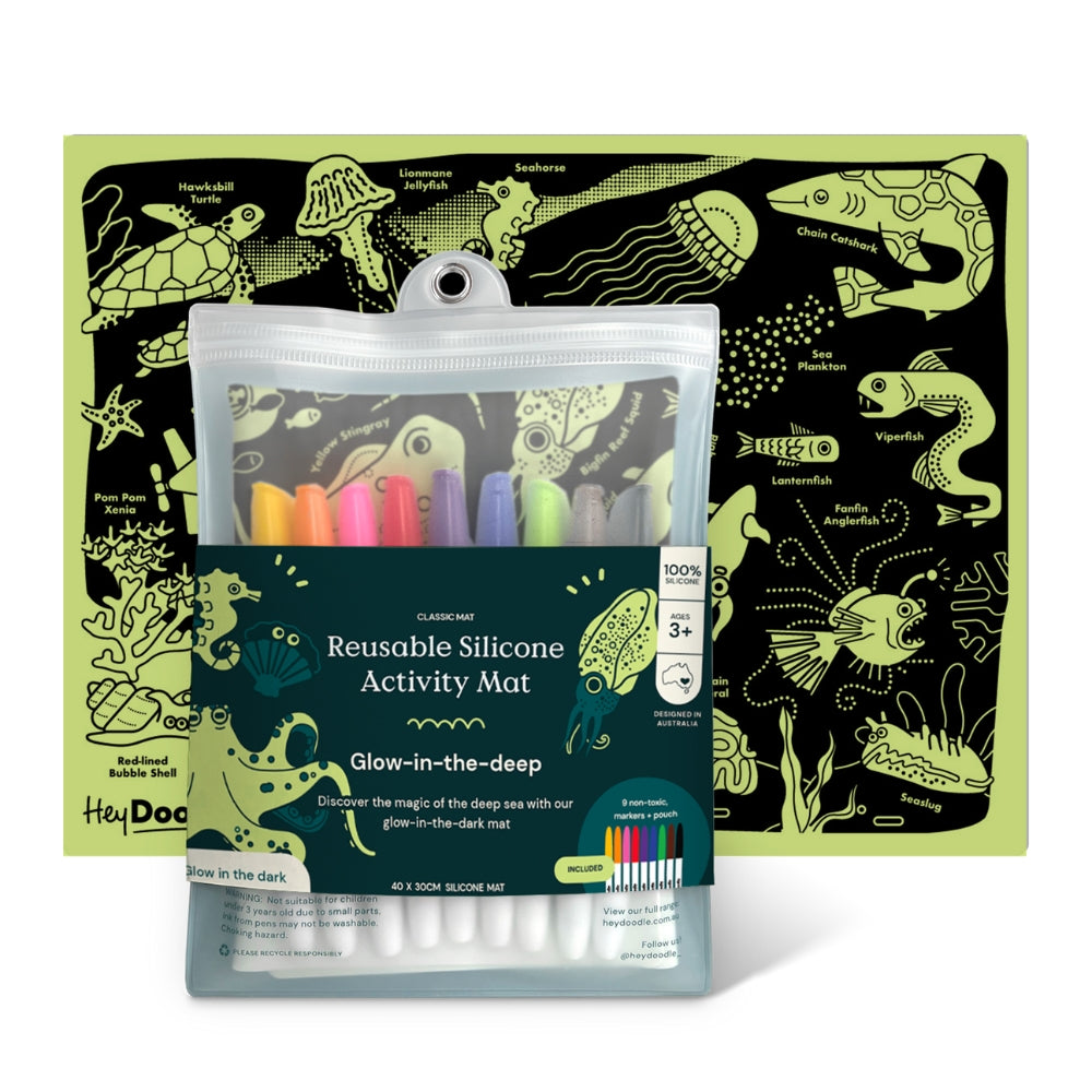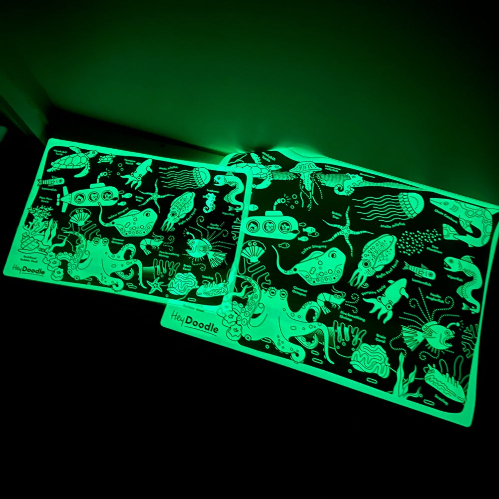 HeyDoodle Glow-in-the-Dark Stor silikone-farvelægningsmåtte A3 - Havets dybder