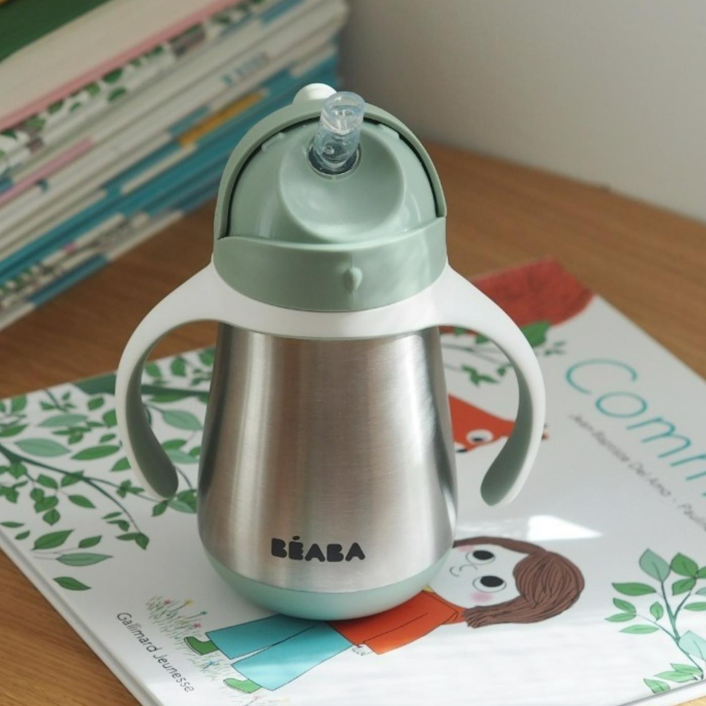 Beaba Steel drypfri kopflaske med sugerør 250 ml Sage