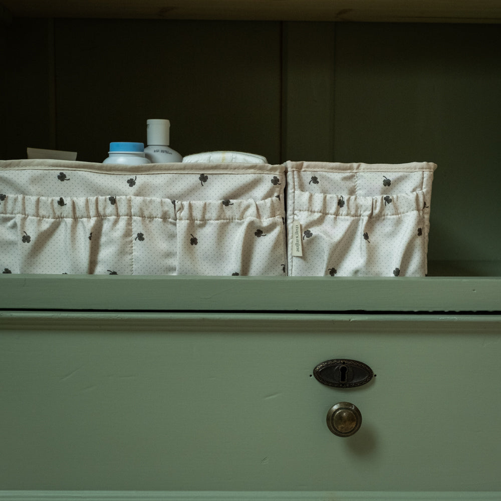 Takket være det smarte design gør organisatoren det nemt at opbevare bleer, cremer, muslinbleer og andre vigtige ting, som det er godt at have ved hånden.