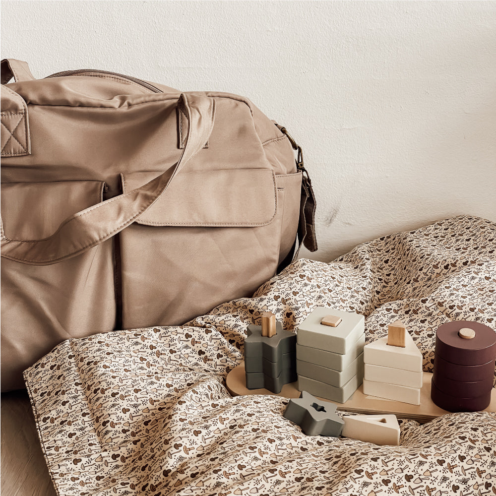 Tasken til mor er lavet af genanvendt polyester og er blevet behandlet naturligt for at gøre den vandtæt.
