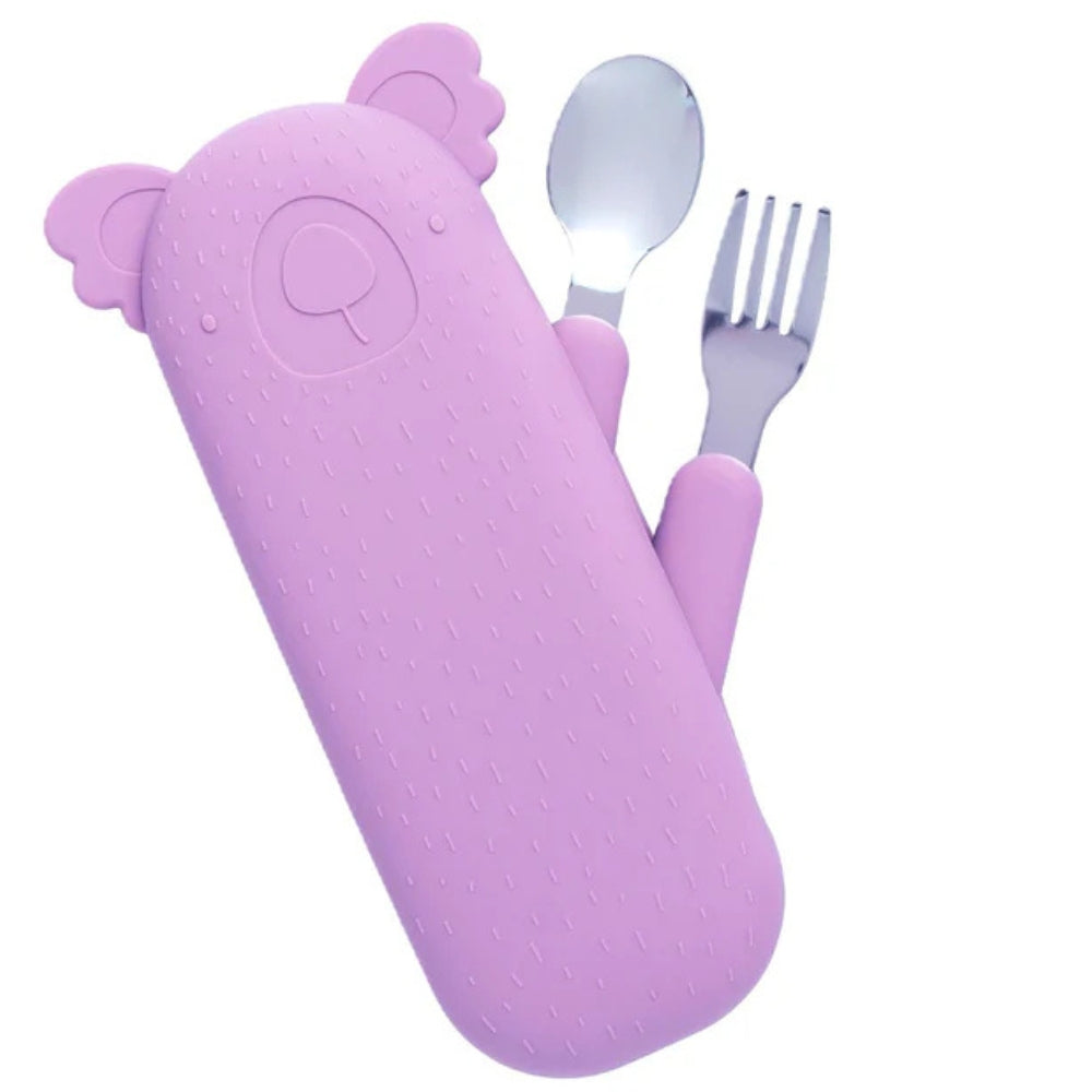 The Cotton Cloud børnebordsbestik i Zoe the Koala-etui i Lilac