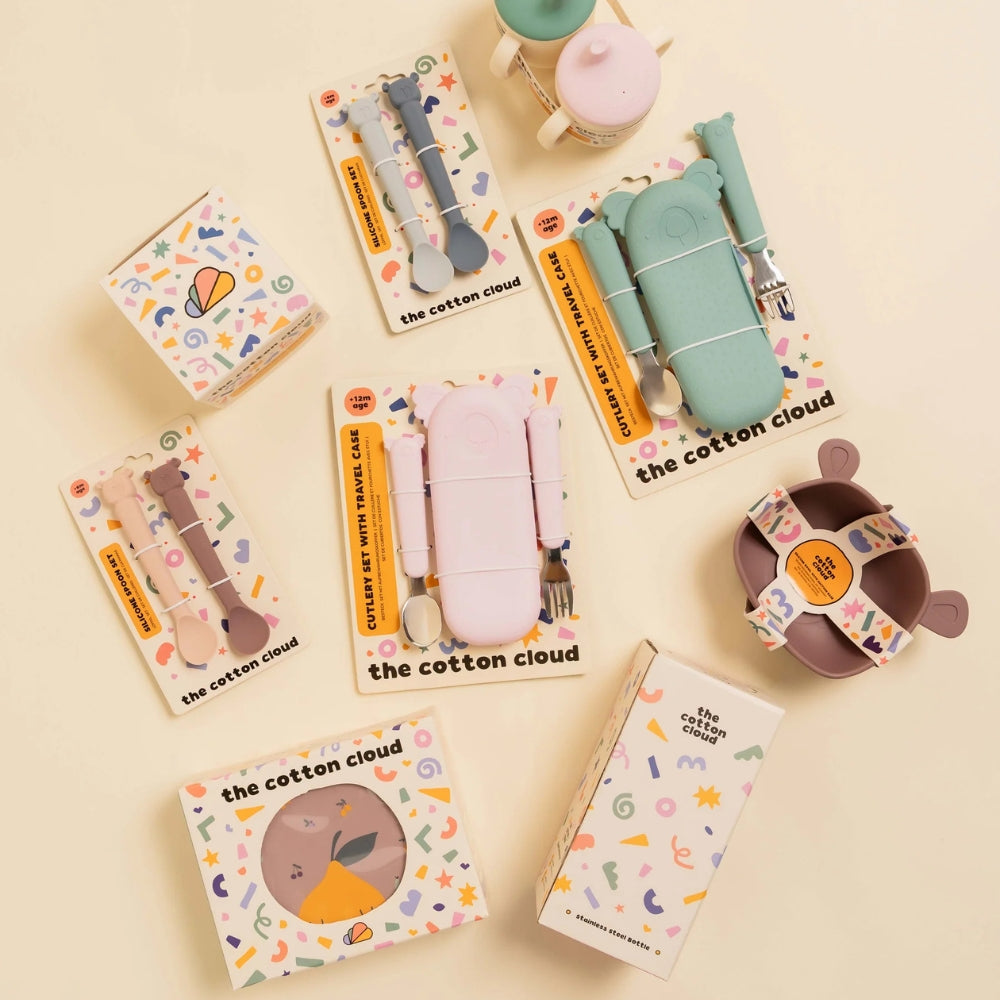 Cotton Cloud har også taget hånd om det praktiske aspekt – der medfølger et silikoneovertræk, som gør det muligt at opbevare dit barns bestik hygiejnisk derhjemme og på farten.