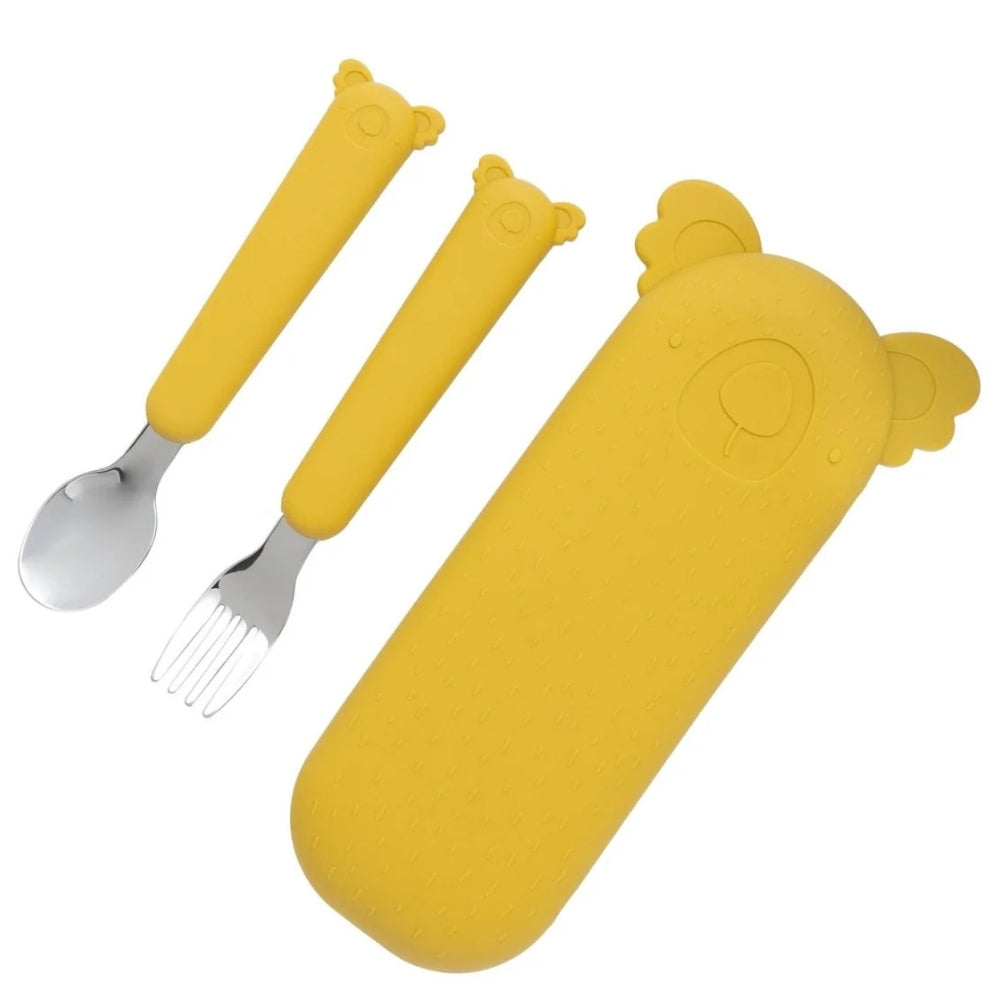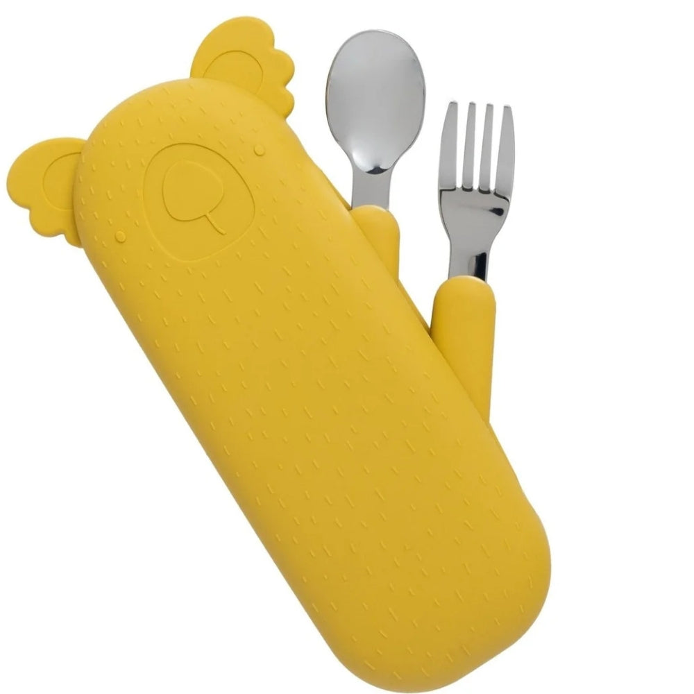 The Cotton Cloud børnebordsbestik i Zoe the Koala-etui i sennepsfarve