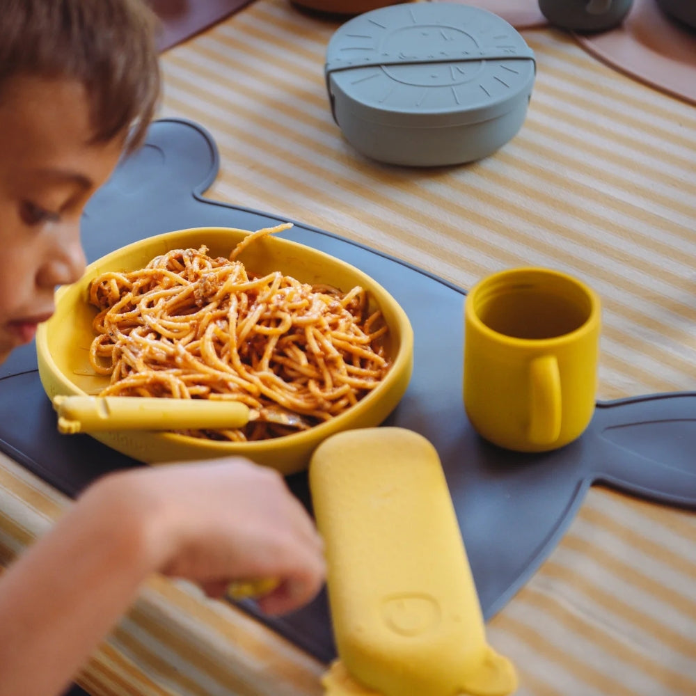 Børnebestiket passer perfekt i små hænder og fremmer selvstændighed ved bordet.