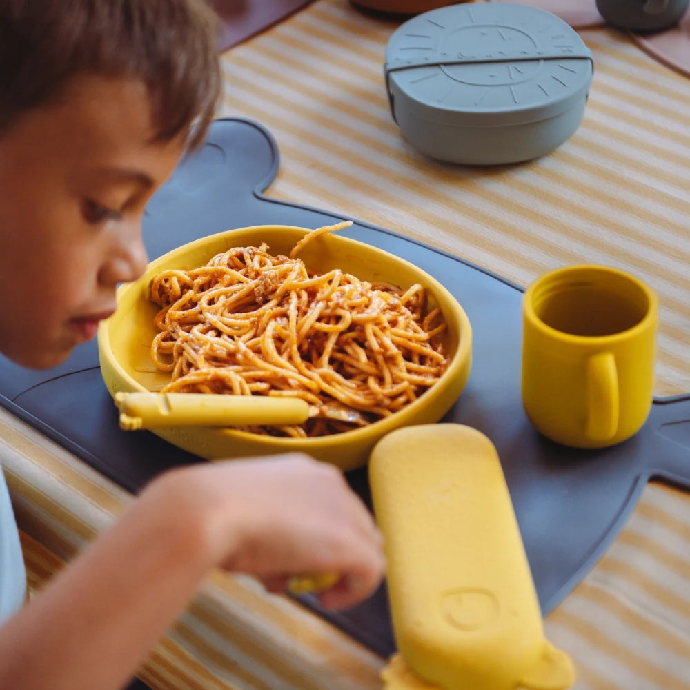 Børnebestiket passer perfekt i små hænder og fremmer selvstændighed ved bordet.