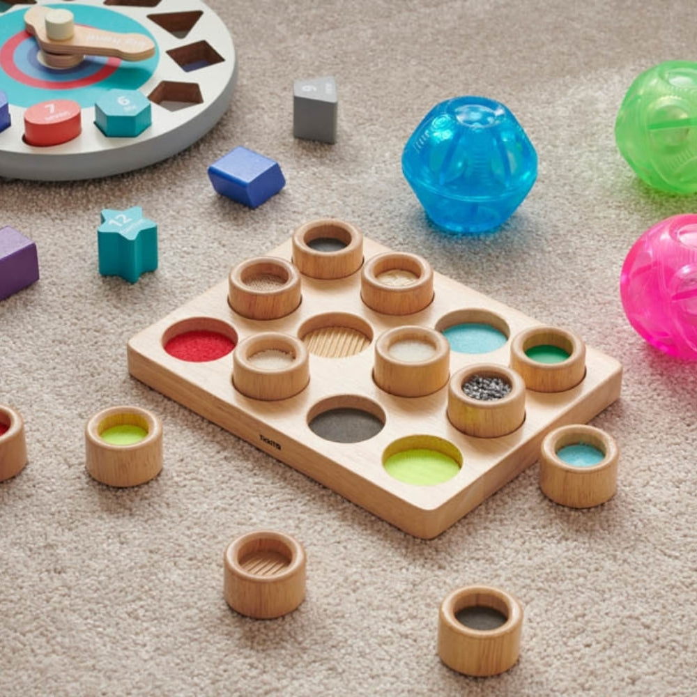 Sensorisk tavle med berørings- og match-legetøj fra TickiT.