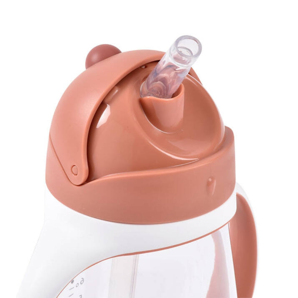 Det praktiske "klik"-låg gør det muligt for barnet at åbne og lukke flasken selv, og den integrerede skala gør det nemt at kontrollere mængden af væske, der drikkes.