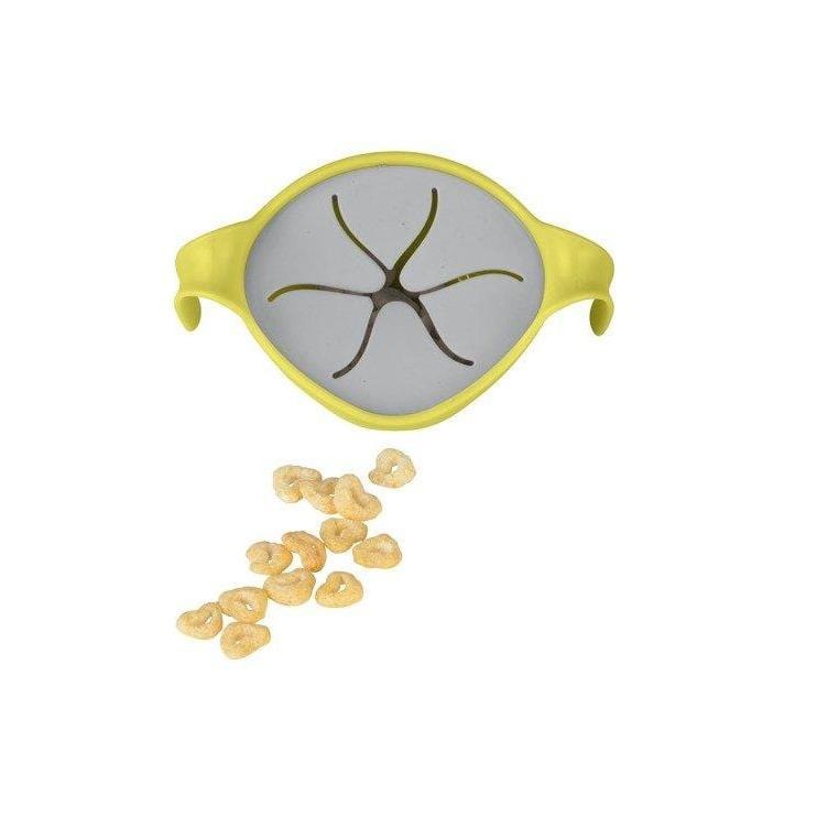 Den har en ekstra indsats, der forvandler skålen til en praktisk spildsikker kop til små snacks