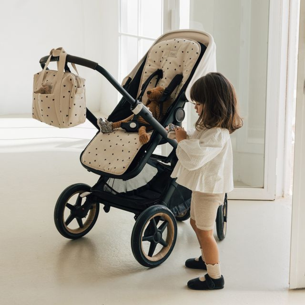 Et barnevognsunderlag, der er nemt at pakke væk og opfriske efter en gåtur - praktisk til hverdagsbrug og til længere udflugter.
