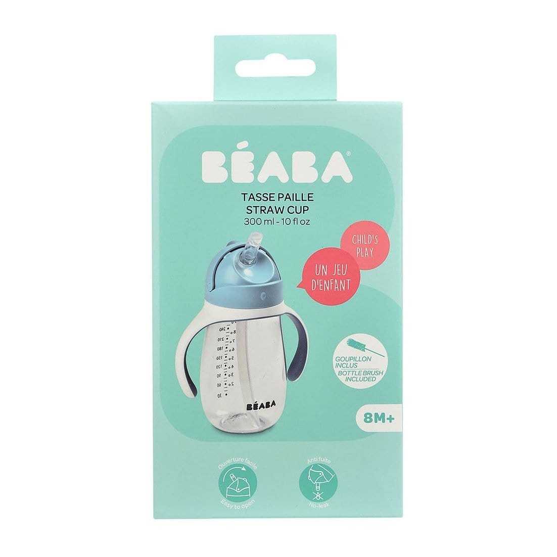 Beaba Flaske med drypskål i tritan med sugerør 300 ml windy blue