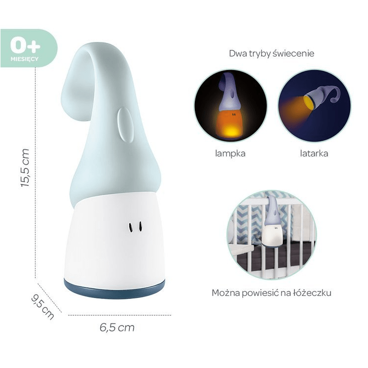 2-i-1-nattelyset til babyer kan også bruges som lommelygte med et stærkere lys nedenfra.