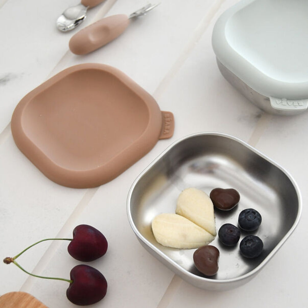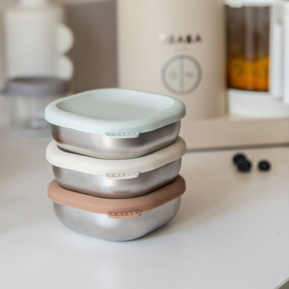 Beaba Rustfri madbeholdere med silikonelåg, 3 stk. Naturfarvet