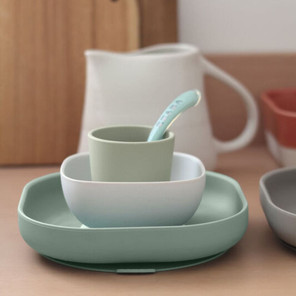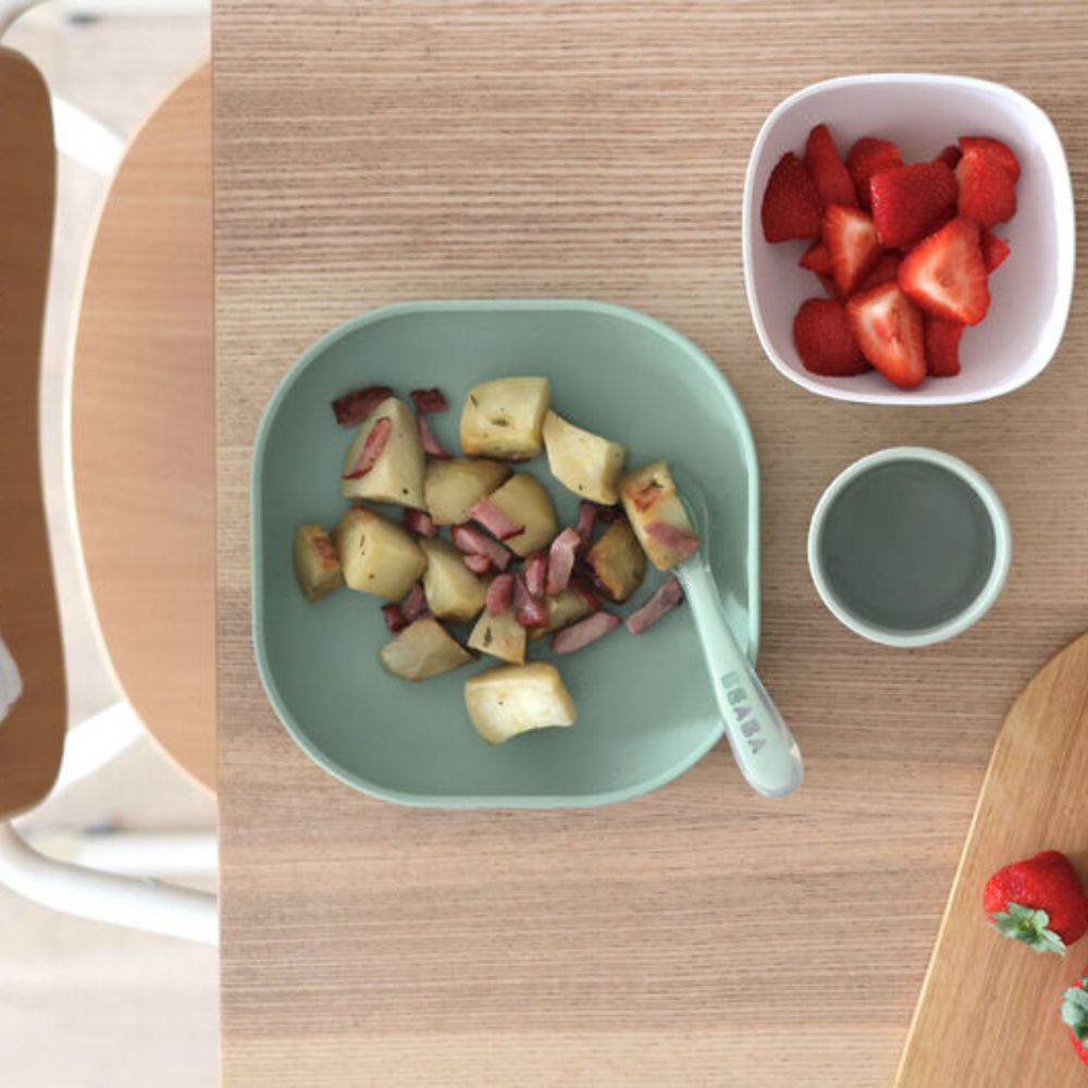 Det komplette sæt børneservice fra Beaba indeholder alt, hvad børn på 2 år og derover og deres forældre har brug for til de daglige måltider.