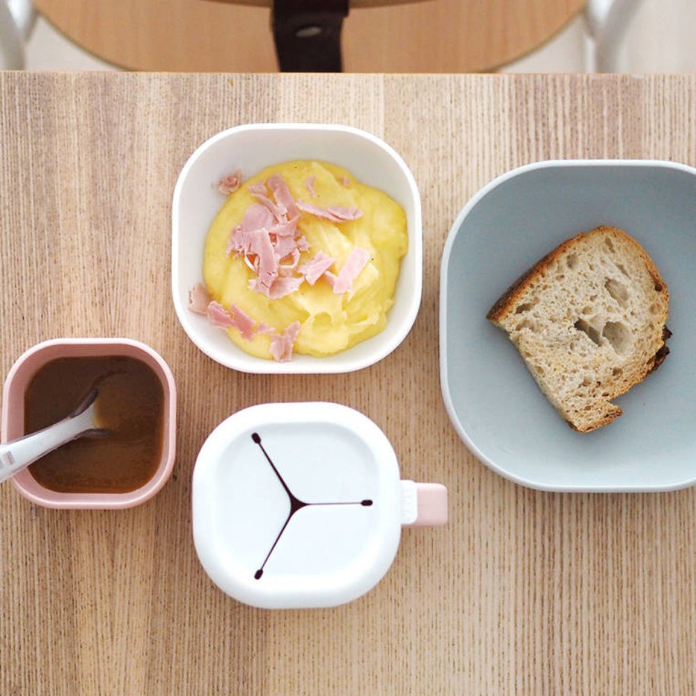 Børneskålen har forskellige rumfang (150 ml + 340 ml + 580 ml), så du kan servere de rigtige portioner eller opdele ingredienserne, hvilket vil hjælpe dit barn med at lære at spise selvstændigt, genkende smag og sammensætte maden korrekt.
