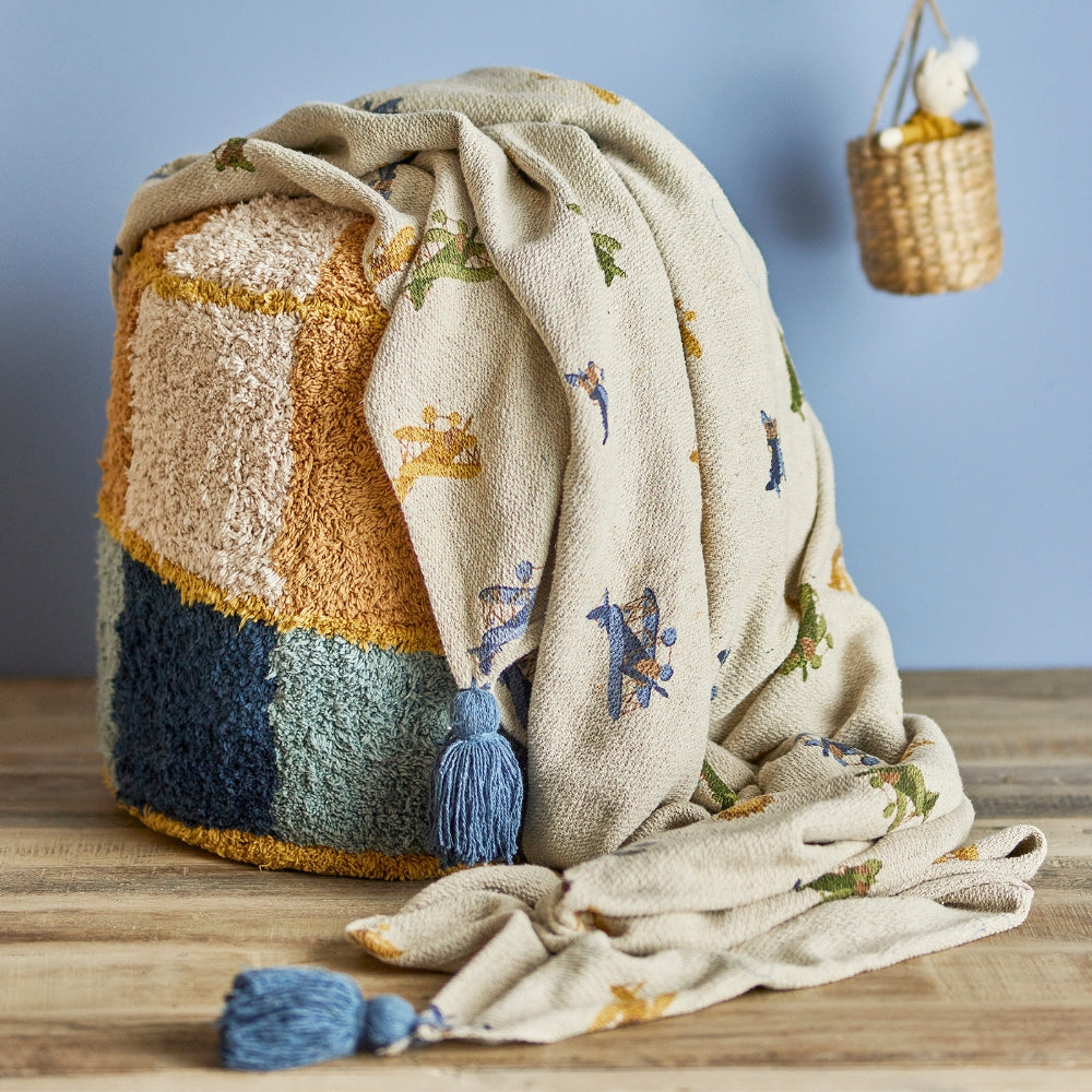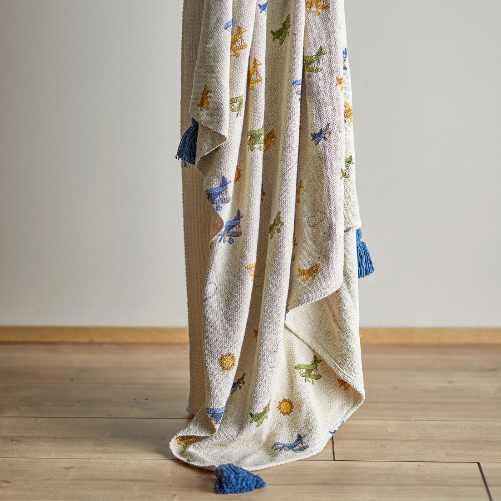 Dette dekorative tæppe fra Plane-kollektionen vil passe smukt ind i et børneværelse, men vil også fungere godt i stuen som et blødt sengetæppe.