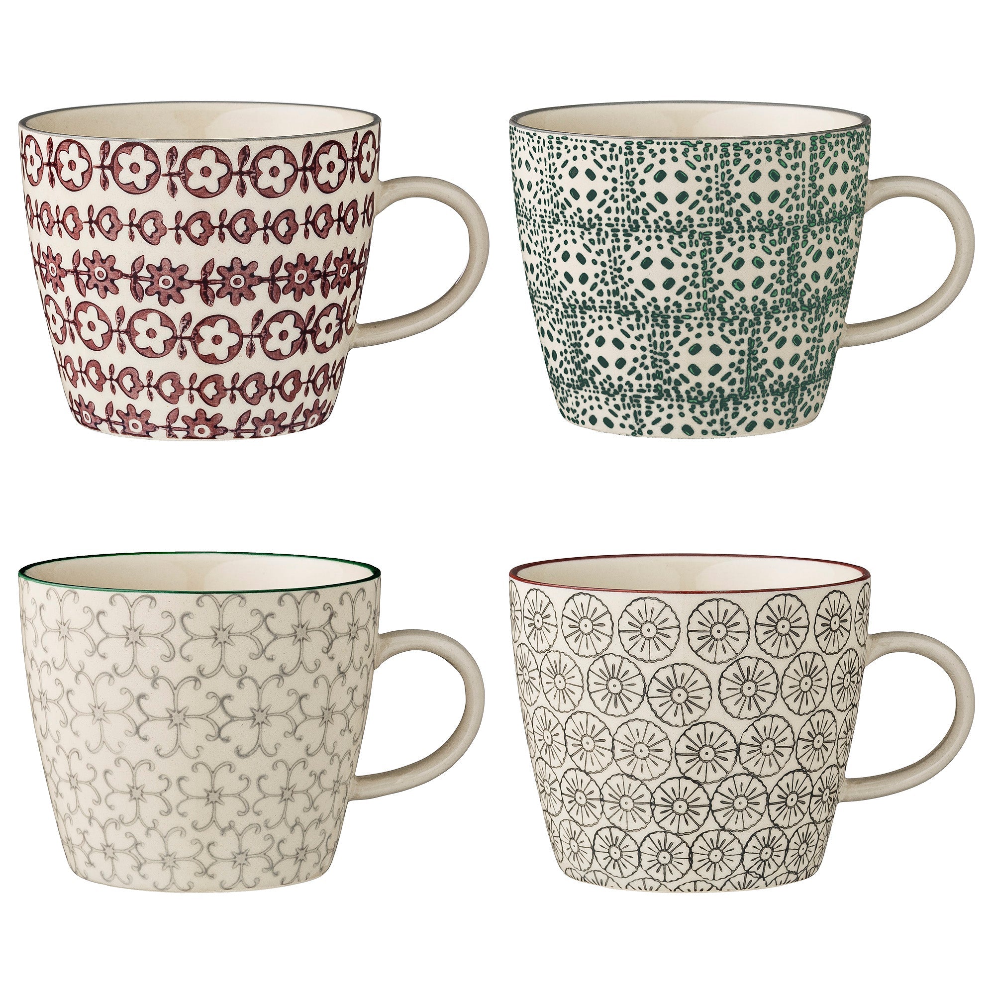 Det unikke sæt med fire Karine-te- og kaffekrus i stentøj fra Bloomingville er en smuk tilføjelse til ethvert bord.