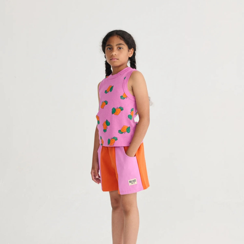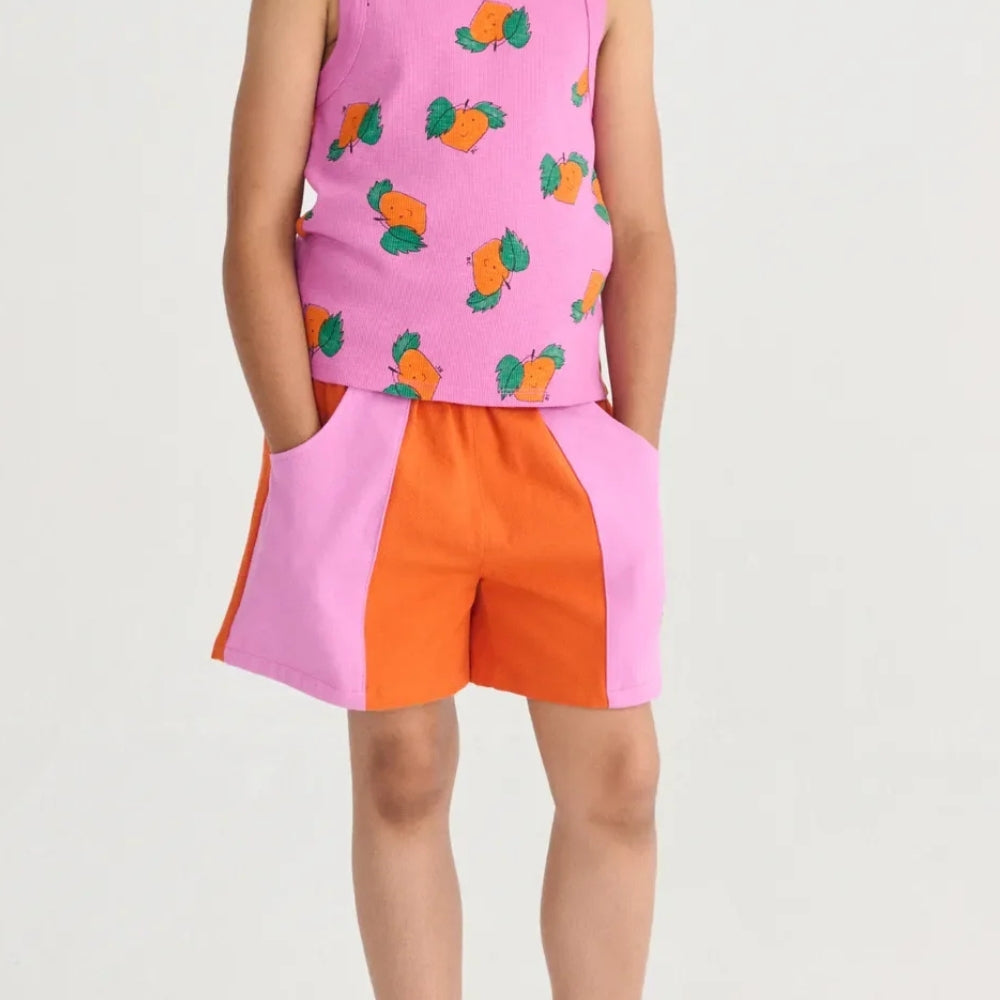 Det lyserøde og orange farveskema er iøjnefaldende og passer perfekt til sommerstilen, mens den skræddersyede pasform gør, at pigeshortsene sidder perfekt på barnets figur.