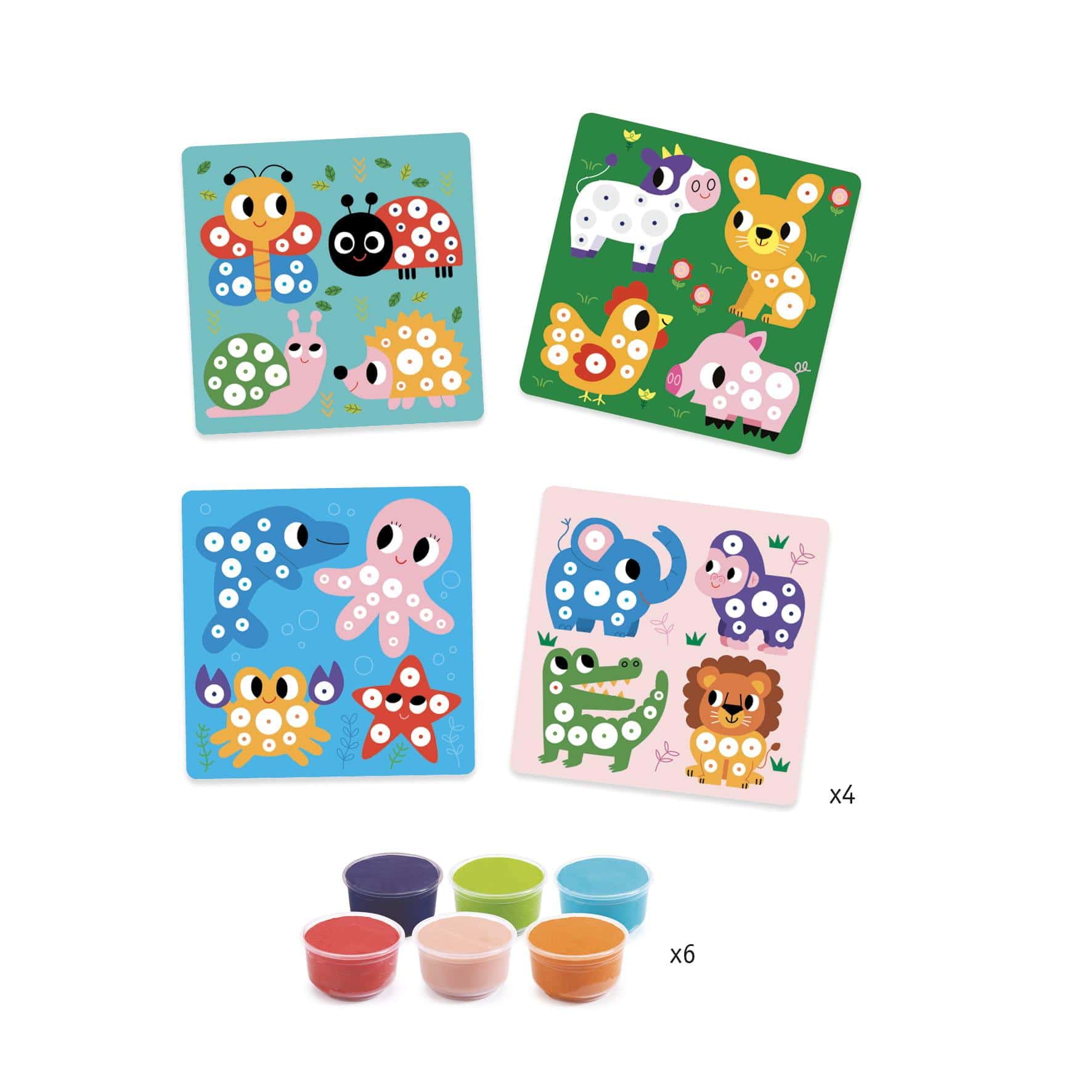 Et kunstsæt til børn med plastmasse Peas fra Djeco.