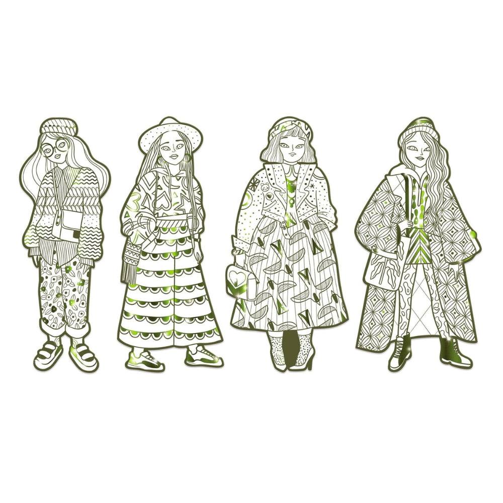 I sættet finder du fire store malebøger (32 cm) med metalliske dekorationer, der giver modellerne et ekstra chic look.