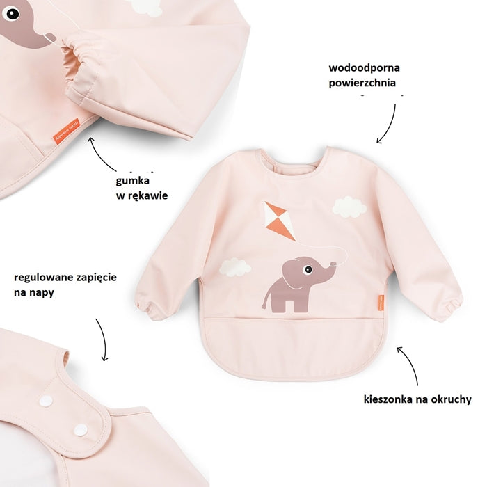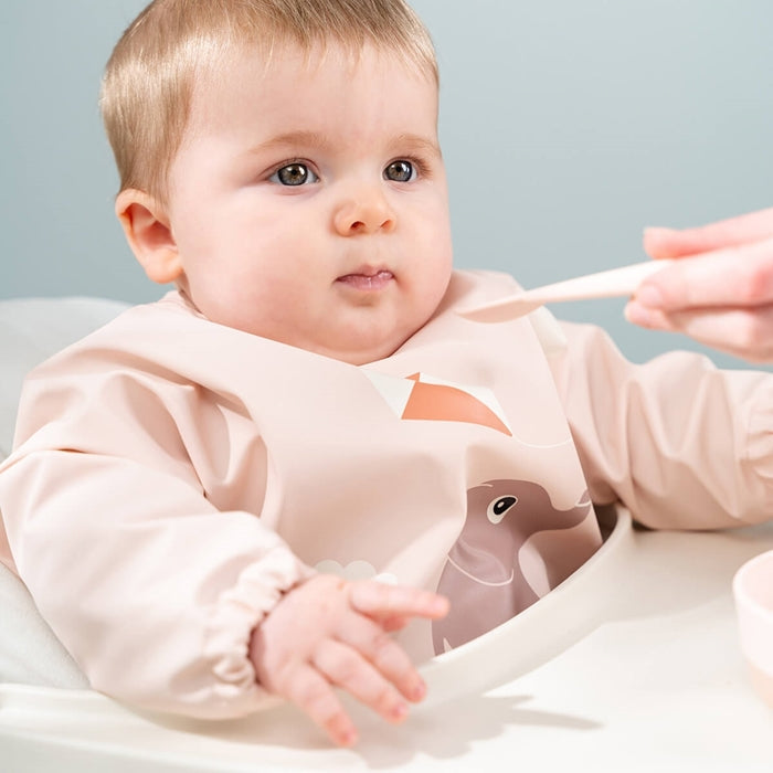 Hagesmækken med ærmer er designet, så din baby kan nyde sin mad fuldt ud uden at få tøj til at blive snavset.
