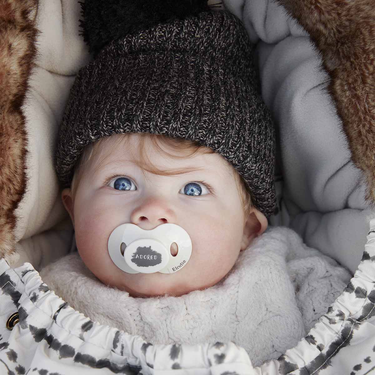 Elodie Details ortodontisk sut 3 msc + Tidemark Drops har et skjold, der ikke irriterer babyens sarte hud.