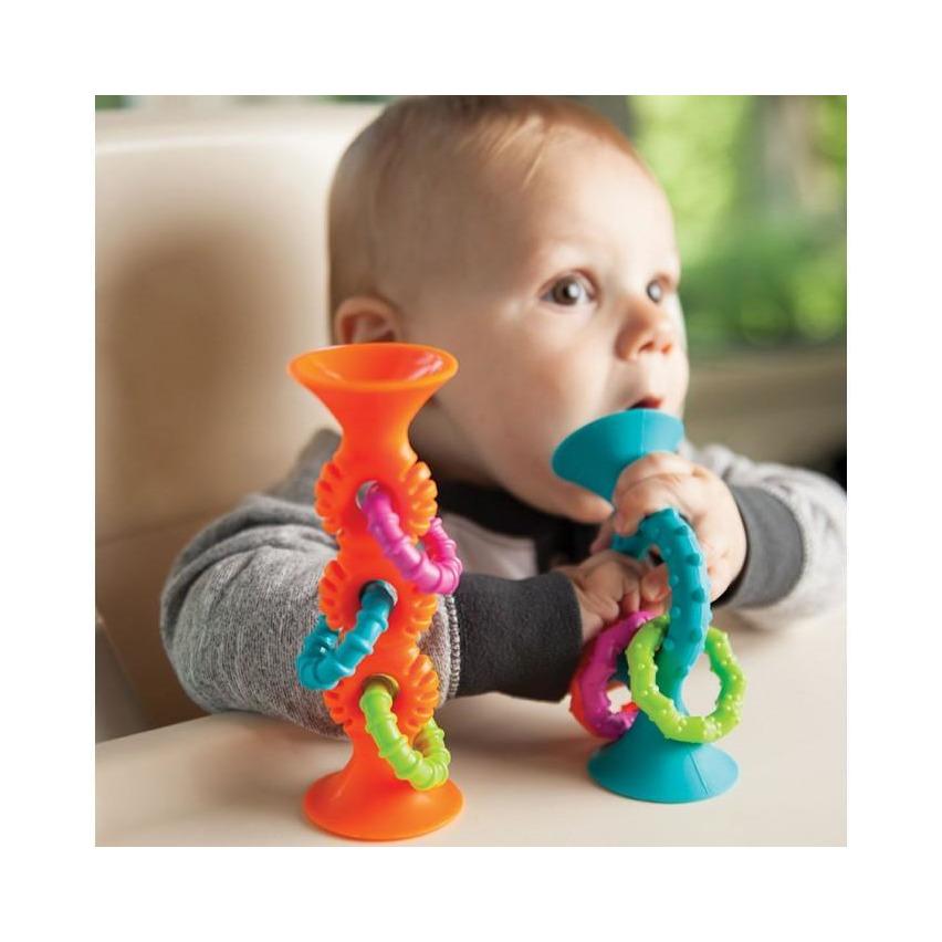 Fat Brain Toys sugekoppen stimulerer barnets taktile, visuelle, auditive og motoriske færdigheder.