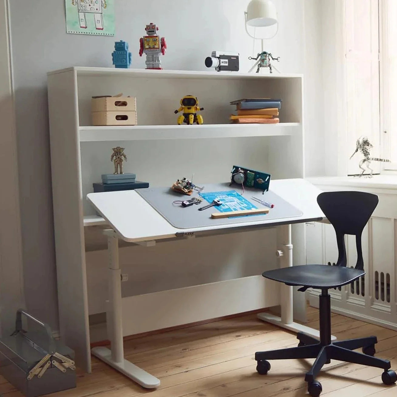 Evo Study Desk børneskrivebord med justerbar højde og vippebordplade fra Flexa.