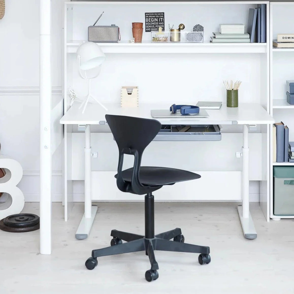 Evo Study Desk børneskrivebord fra Flexa sikrer, at dit barn har det perfekte sted at studere i mange år fremover.
