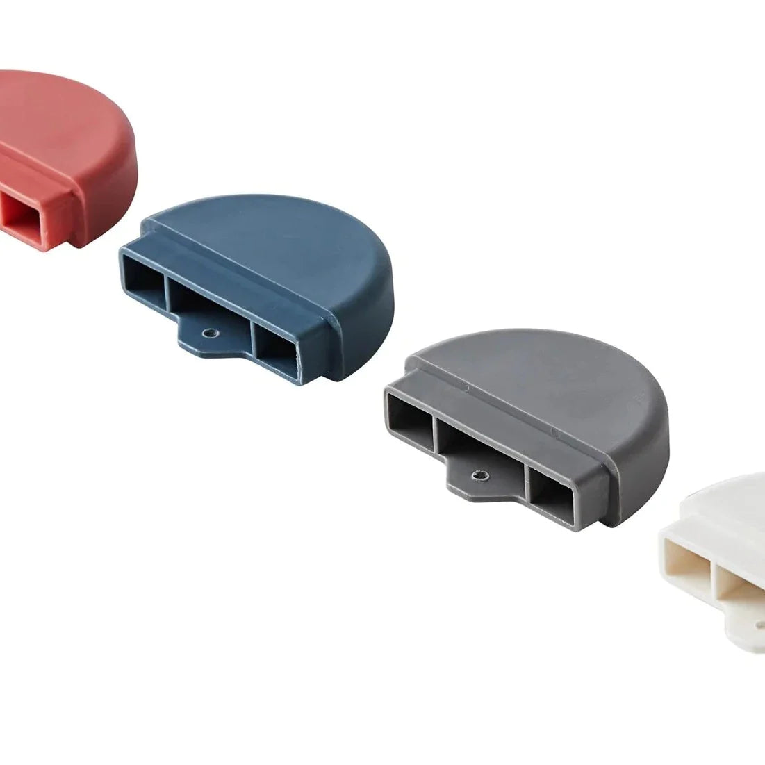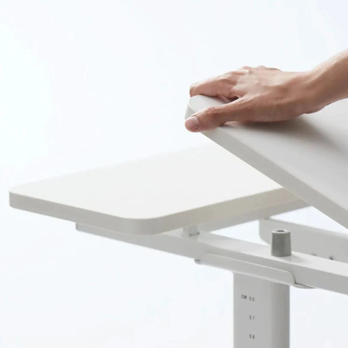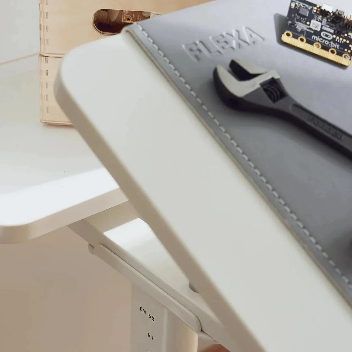 Skrivebordet leveres med en lineal og 4 stk. plastfødder i forskellige farver: Frosty Blue, Misty Rose, Full White og Mountain Grey.